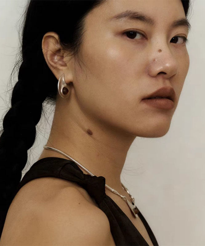 Fine Silk Copper Glass Crescent Moon Hoop Earrings