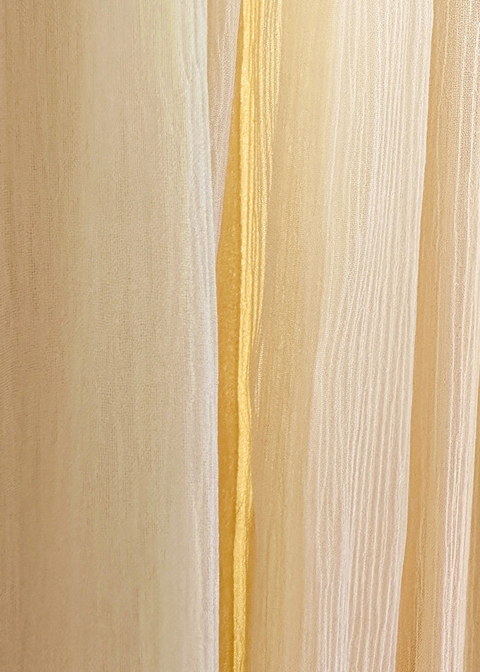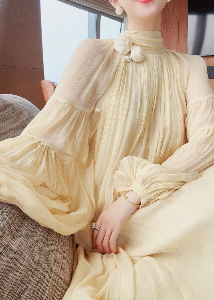 French Light Yellow Wrinkled Floral Patchwork Silk Dress Spring