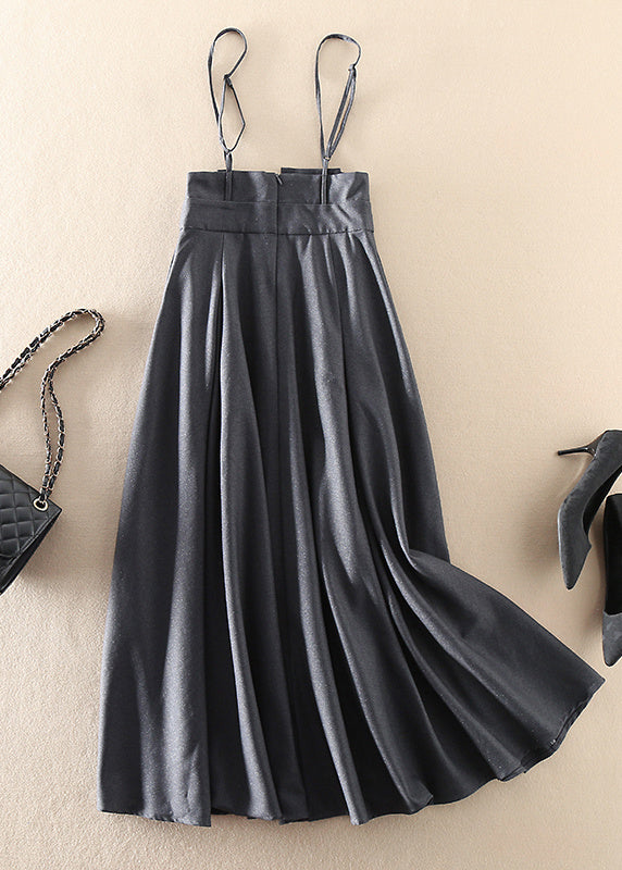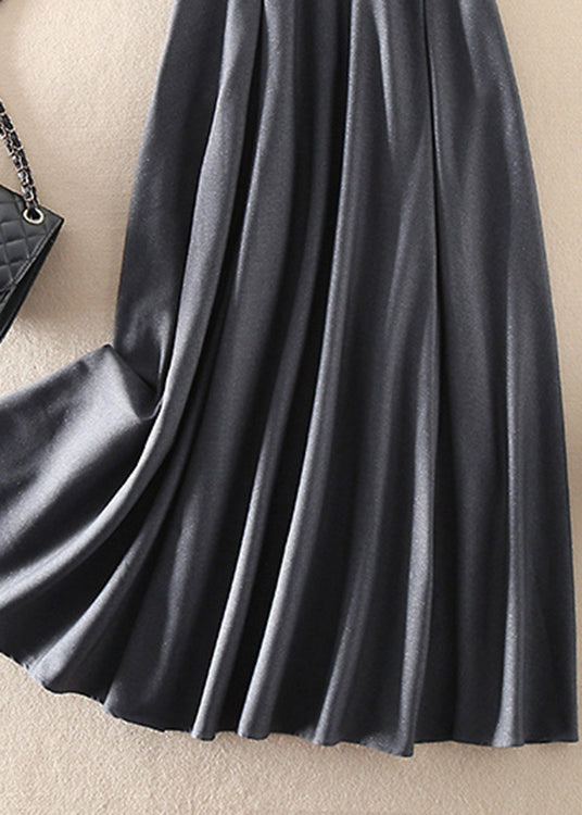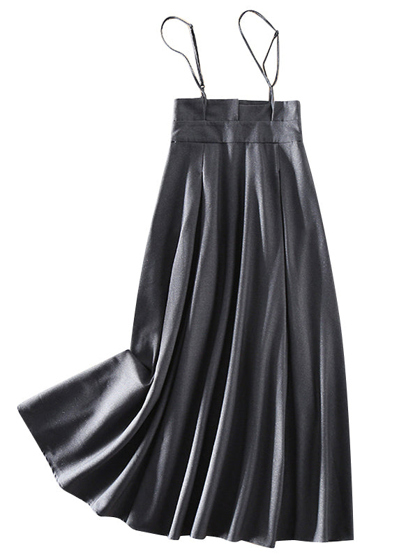 Italian Grey Zip Up Pockets wrinkled Silk Dresses Sleeveless