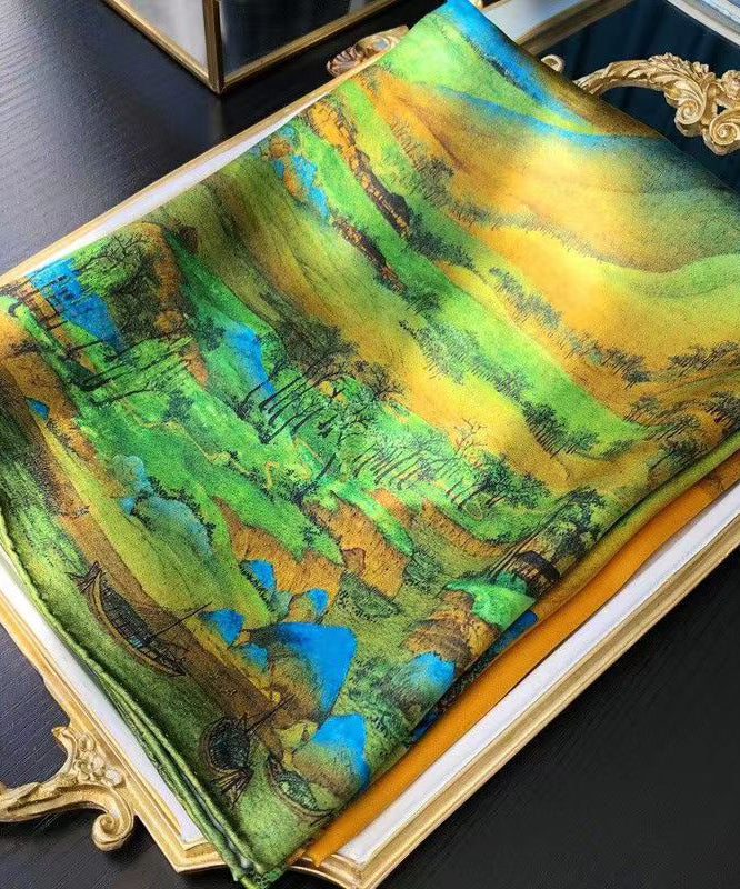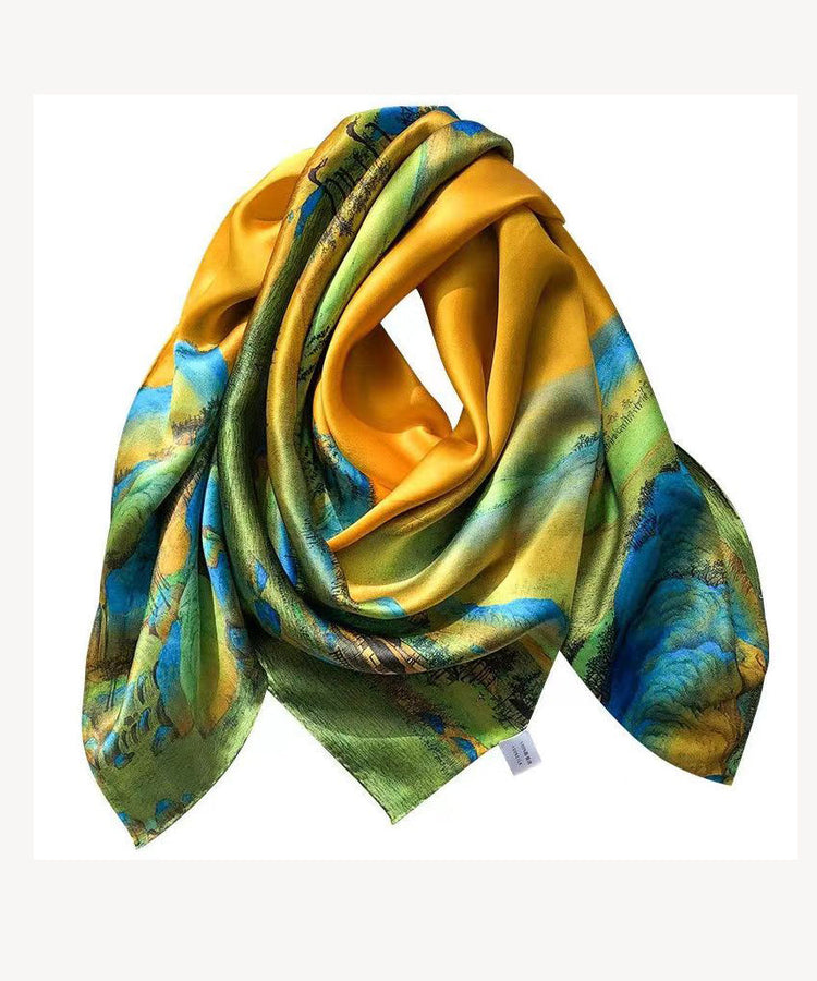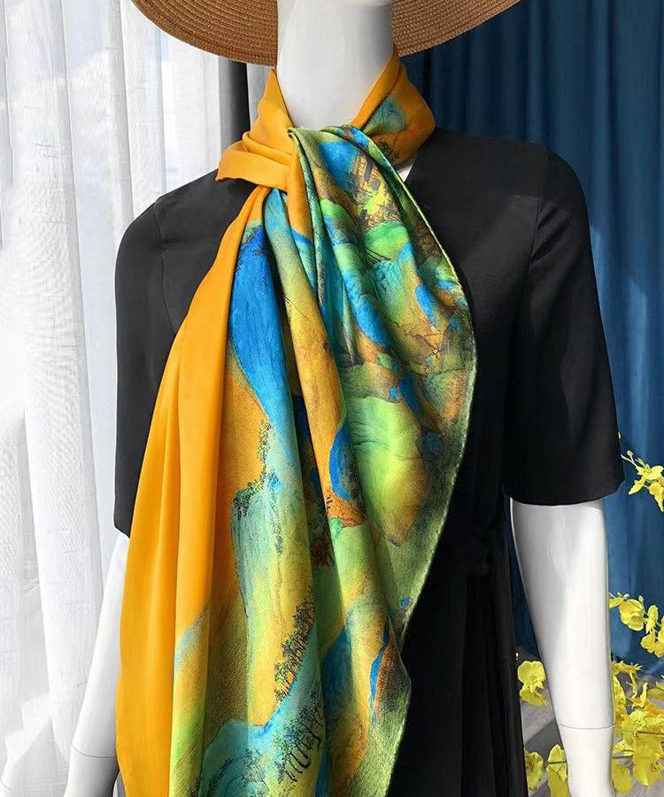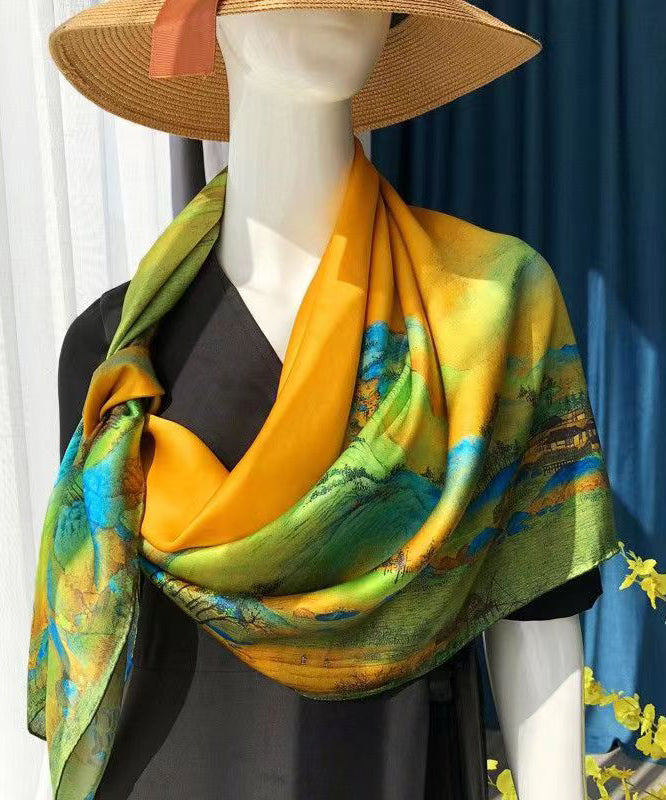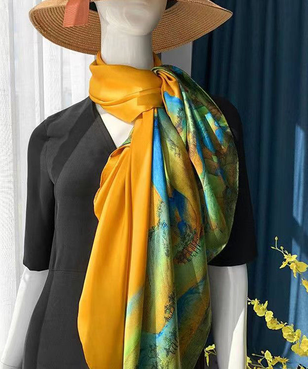 Italian Yellow Print Comfy Versatile Silk Scarf