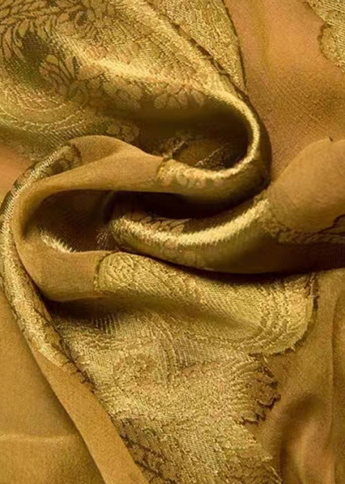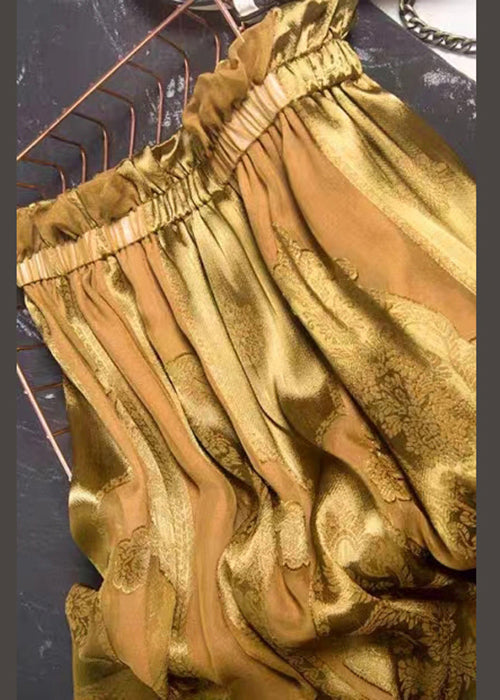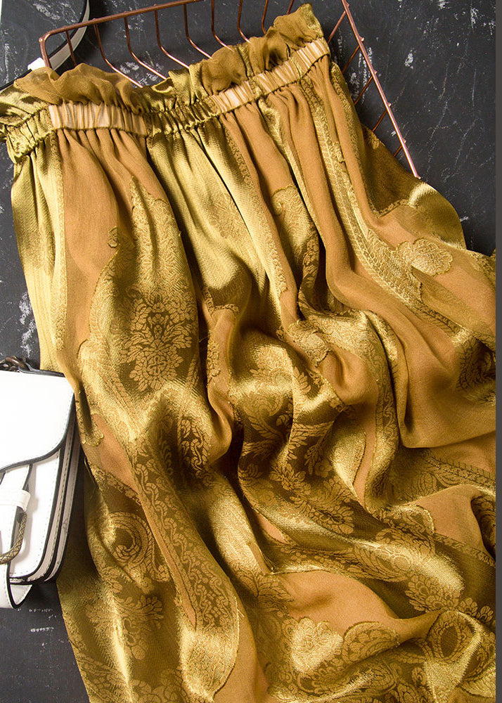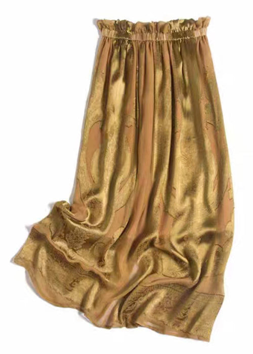 Loose Yellow Embroideried Elastic Waist Silk Skirt Fall