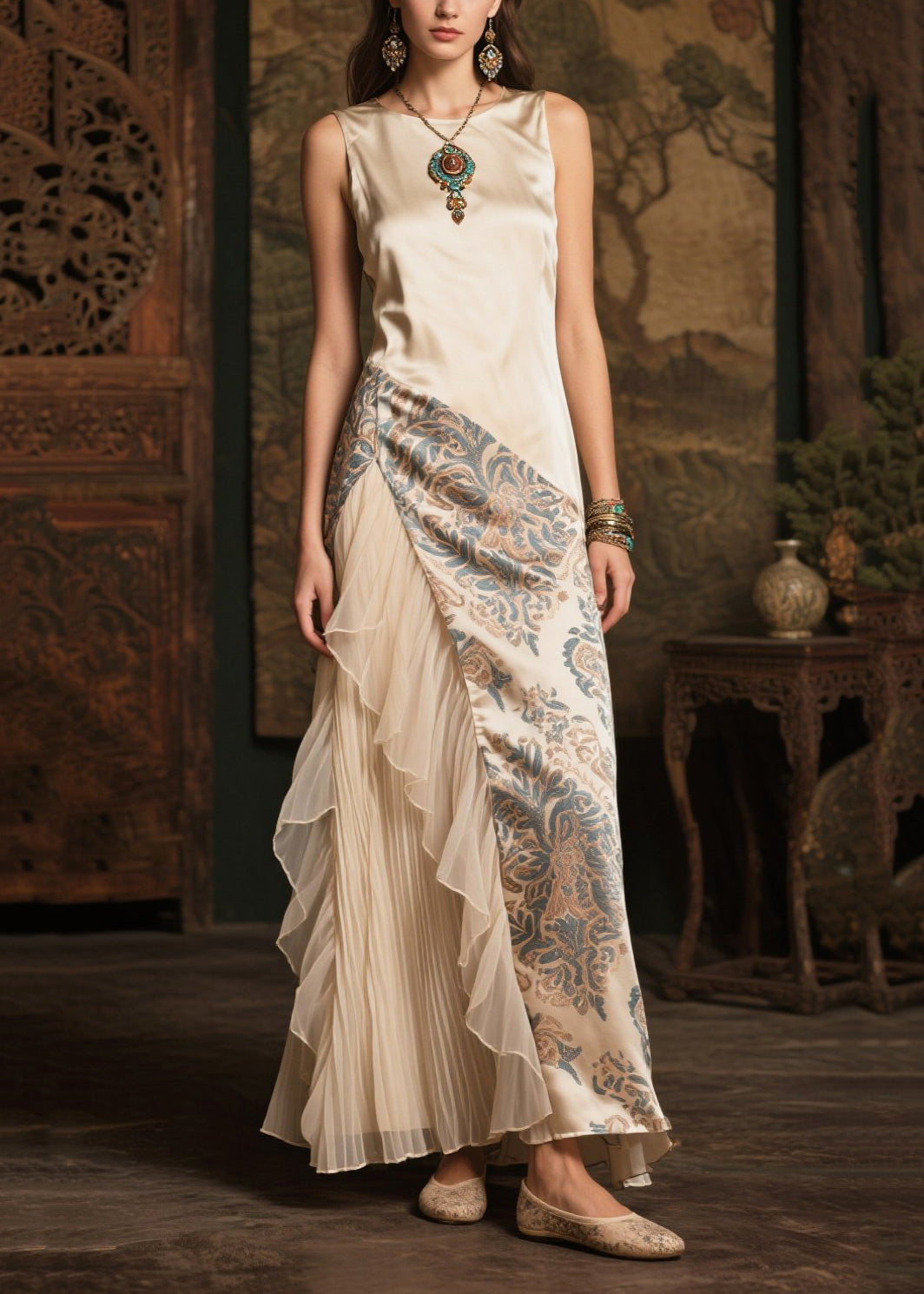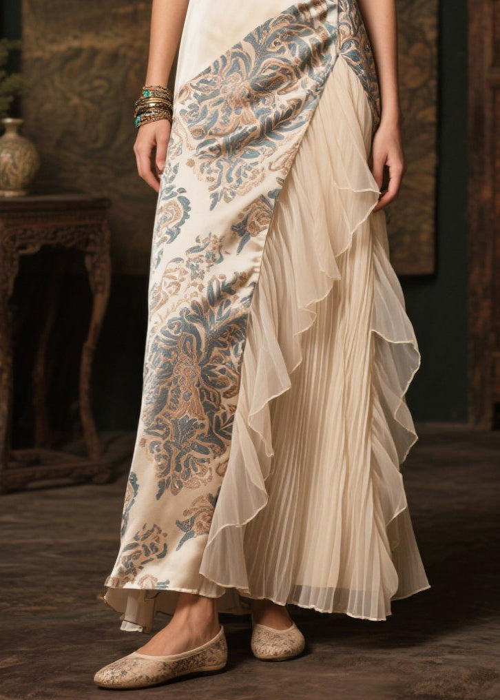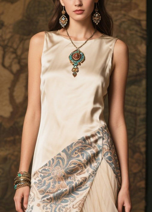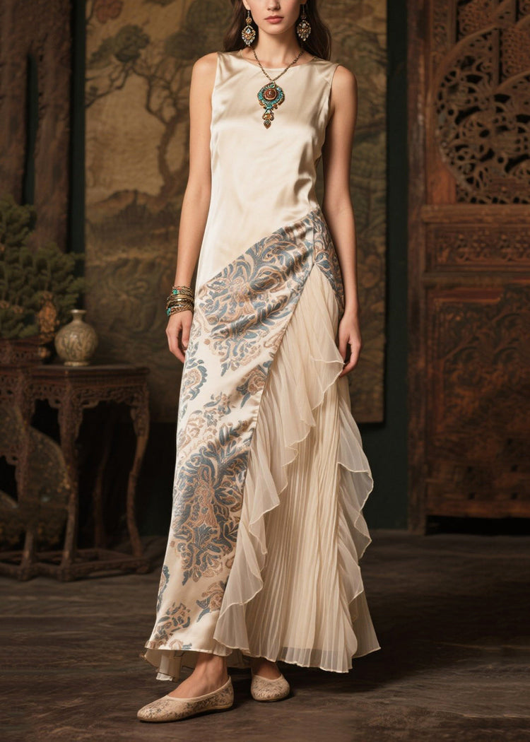 Modern Champagne Print Patchwork Tulle Silk Robe Dresses Summer