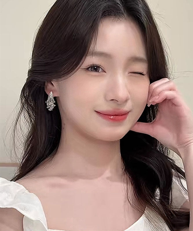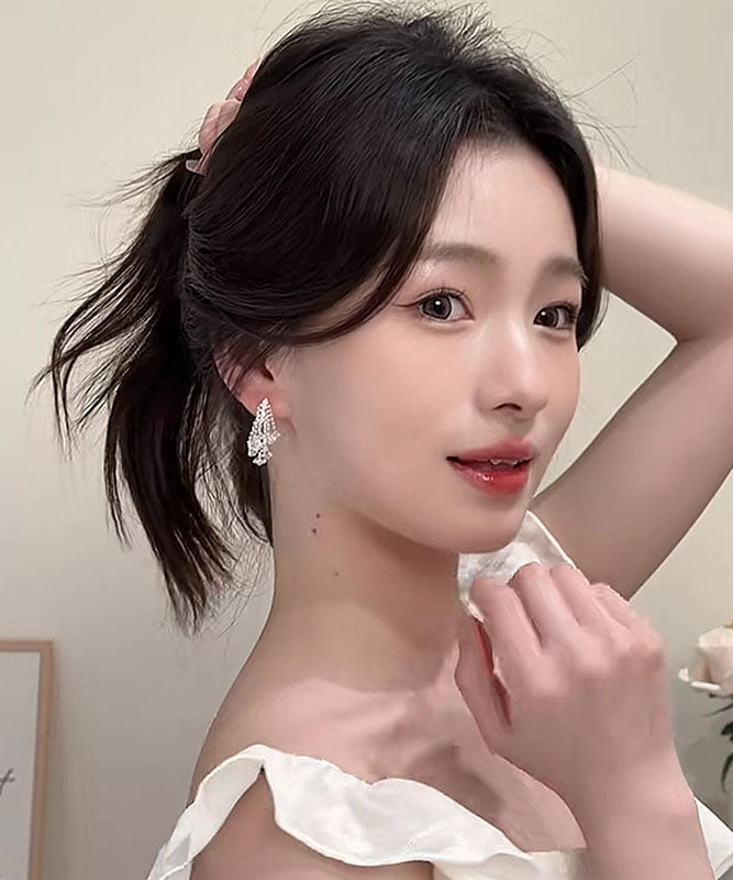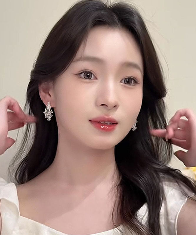 Modern Silk Sterling Silver Zircon Fireworks Tassel Drop Earrings