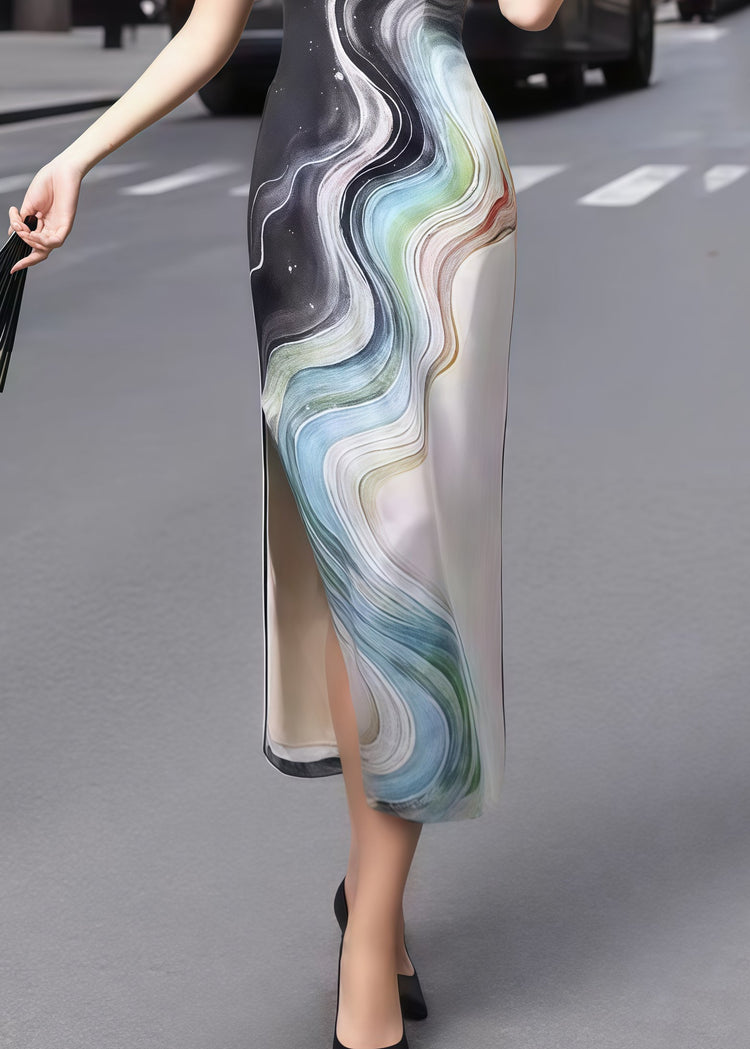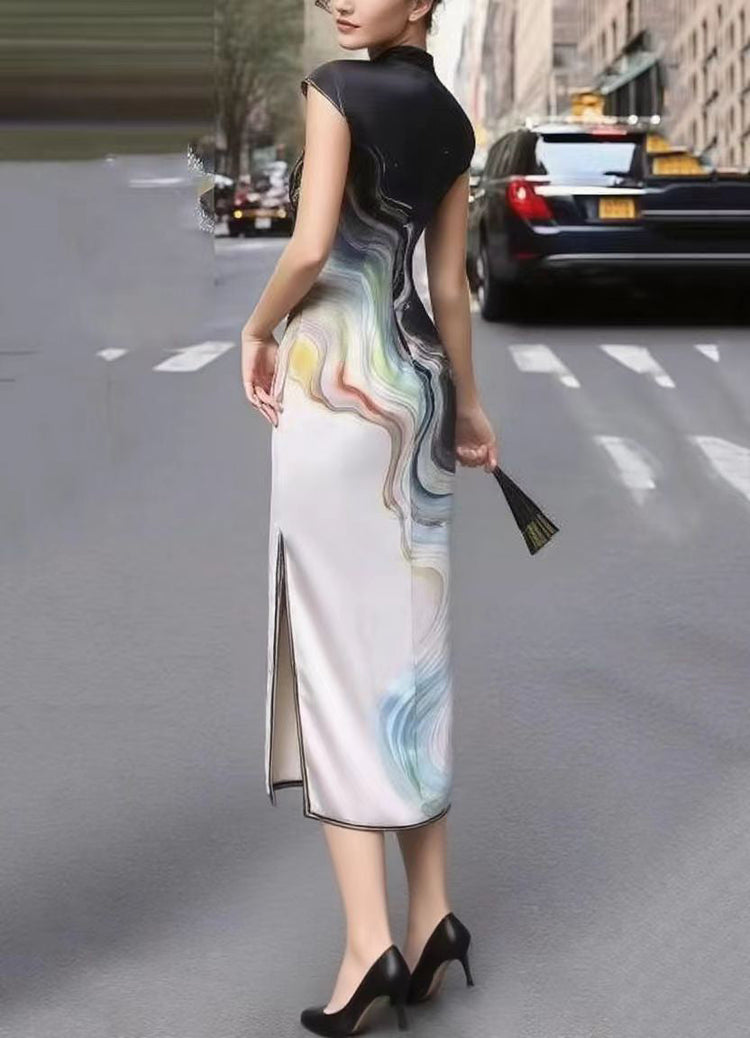 New Retro Black Print Silk Oriental Womens Dress Summer
