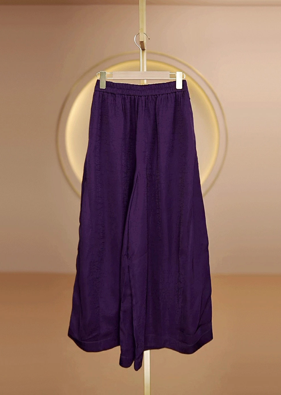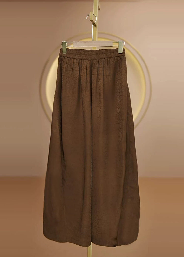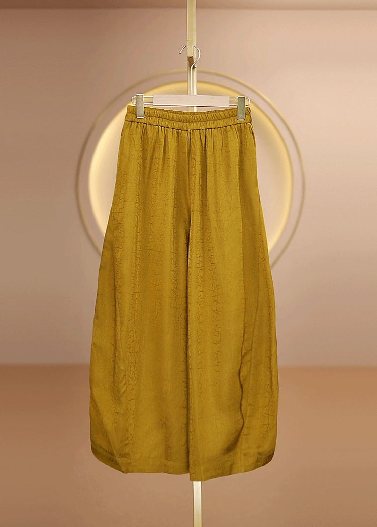 New Yellow Elastic Waist Silk Wide Leg Pants Fall
