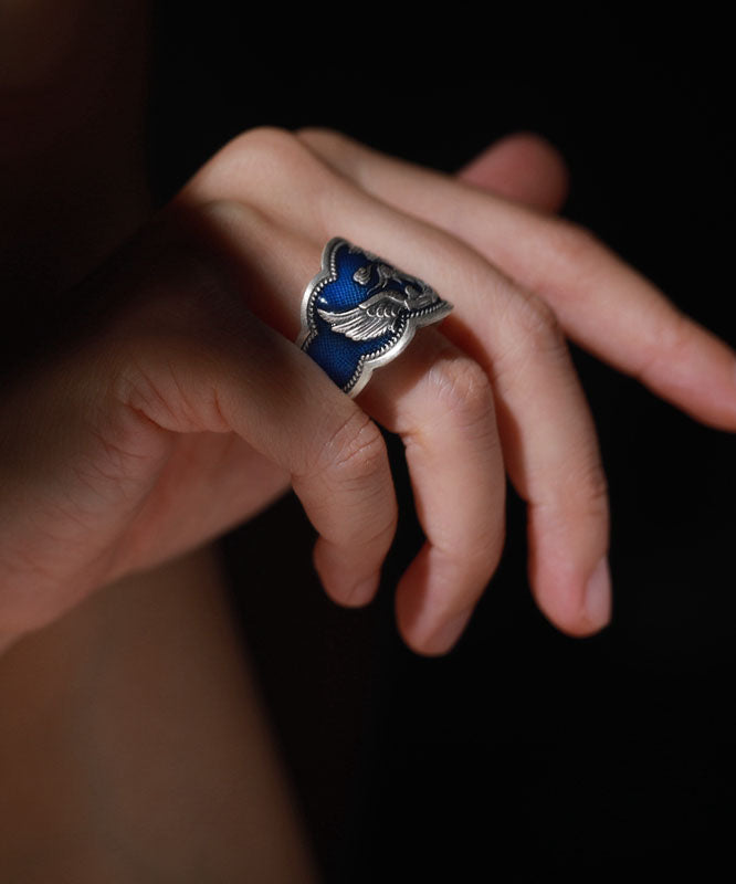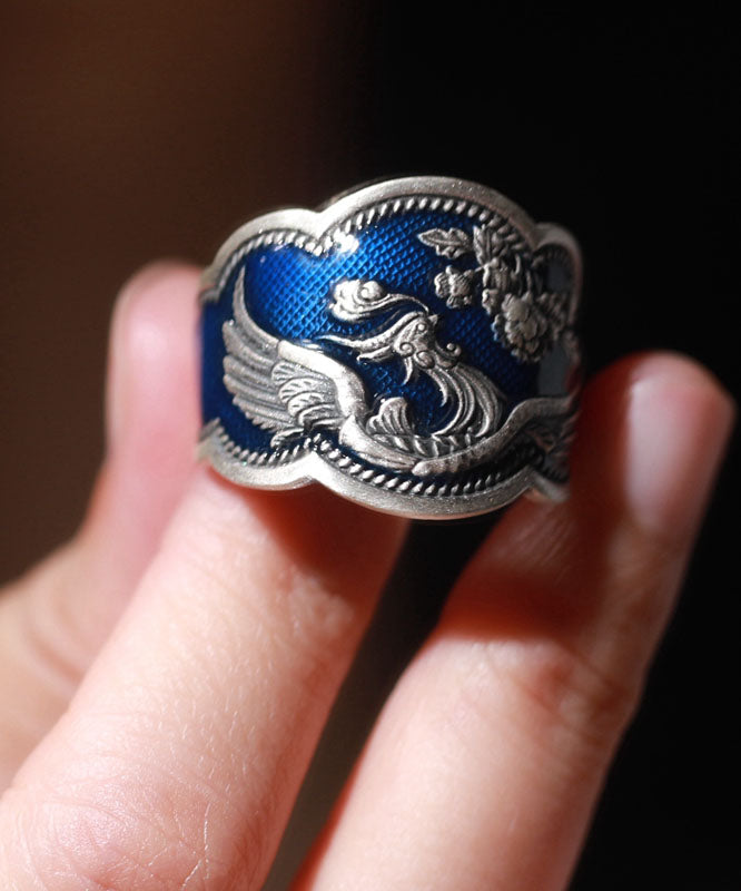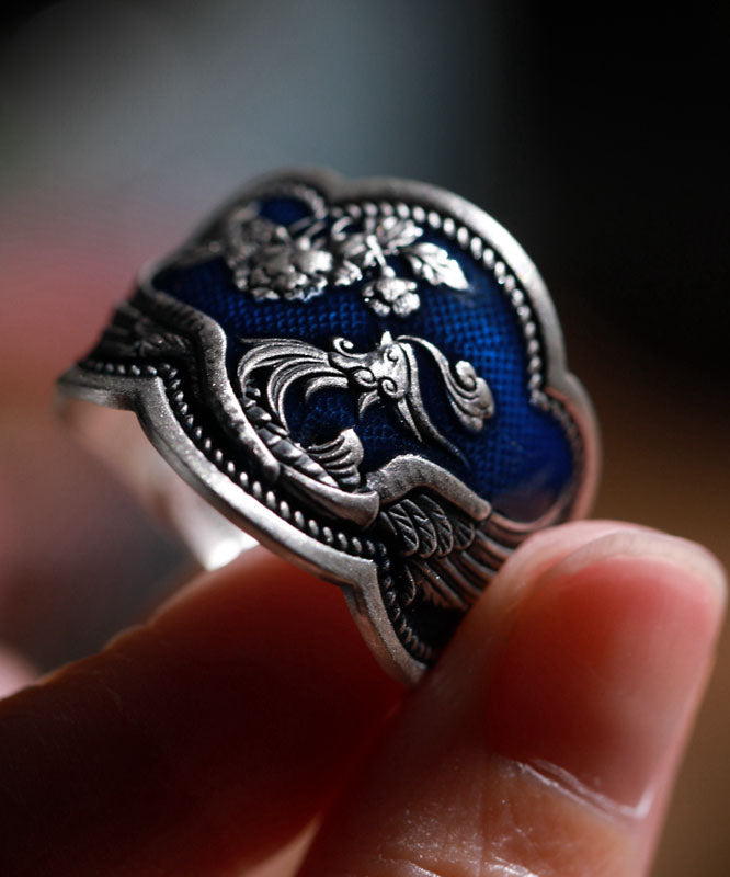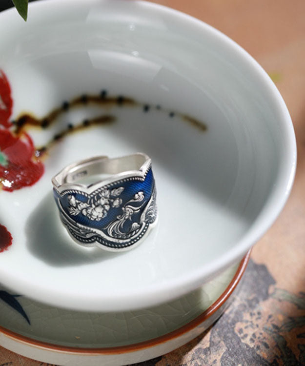 Regular Silk Sterling Silver Enamel Cloisonne Peony Rings