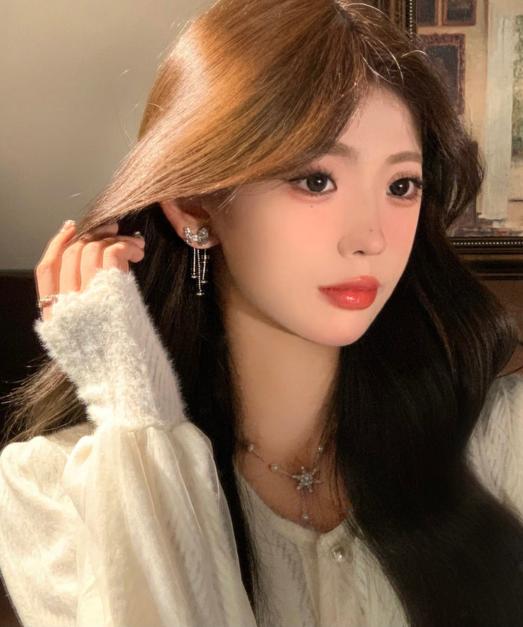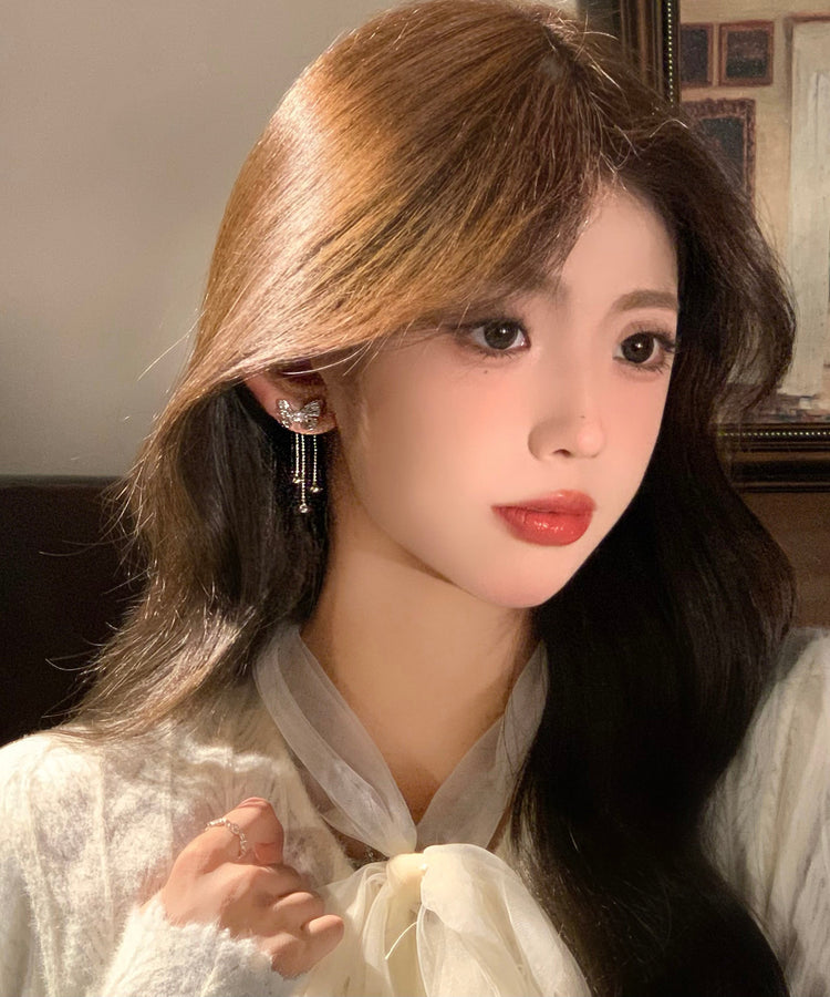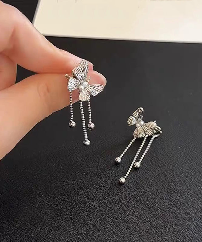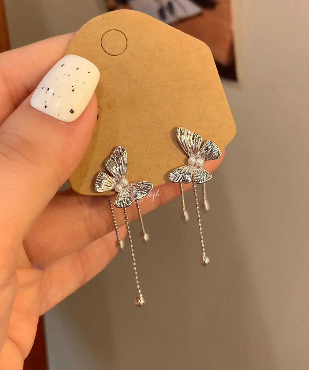 Retro Silk Sterling Silver Butterfly Pearl Tassel Drop Earrings