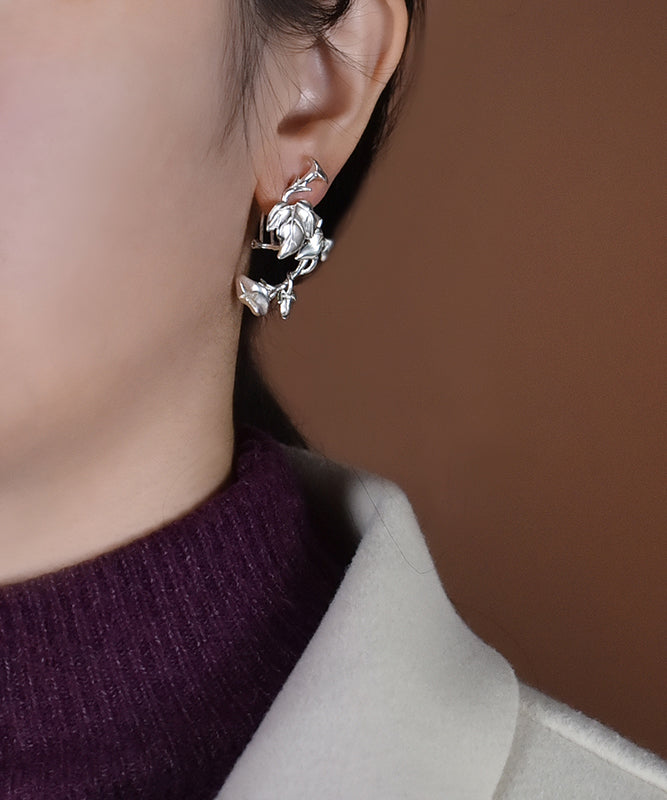 Retro Silk Sterling Silver Morning Glory Stud Earrings