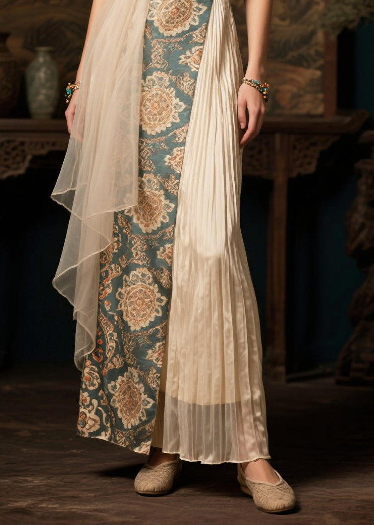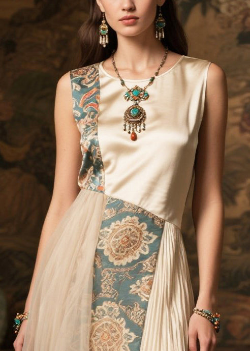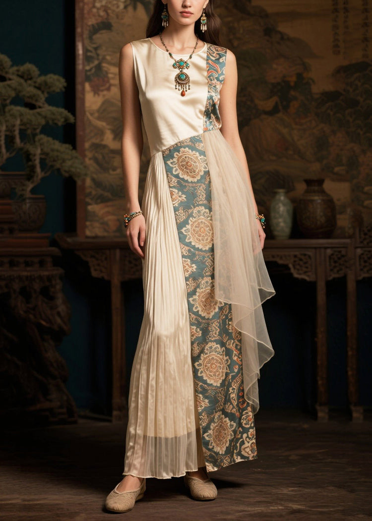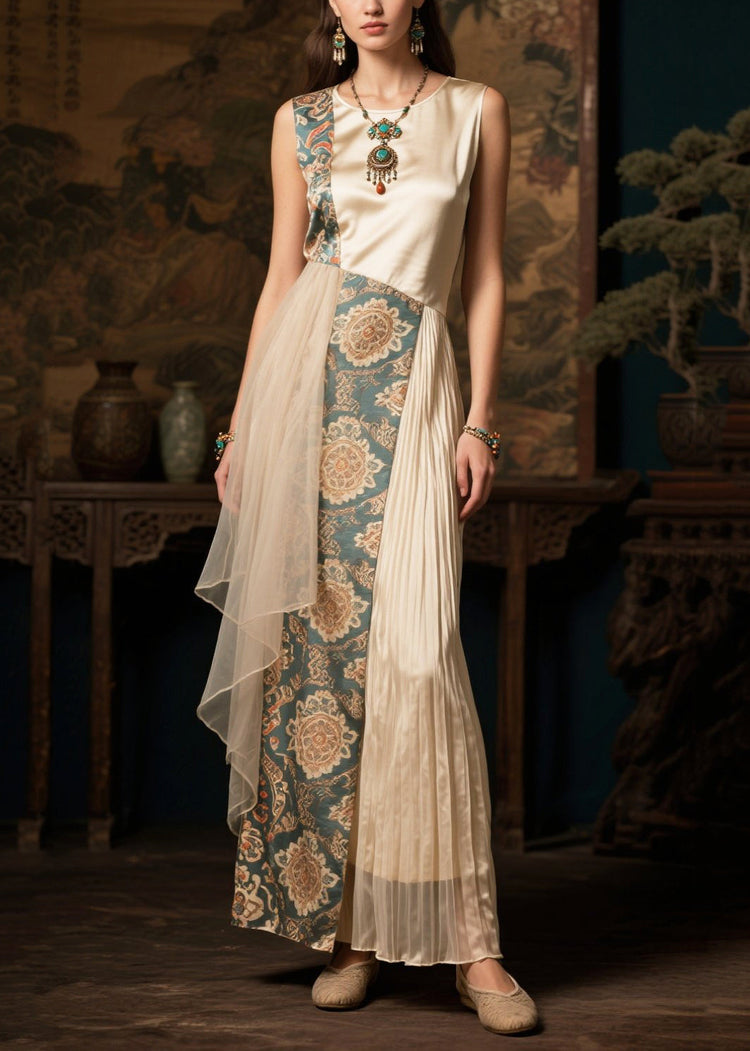 Style Beige Asymmetrical Patchwork Wrinkled Silk Holiday Dress Summer