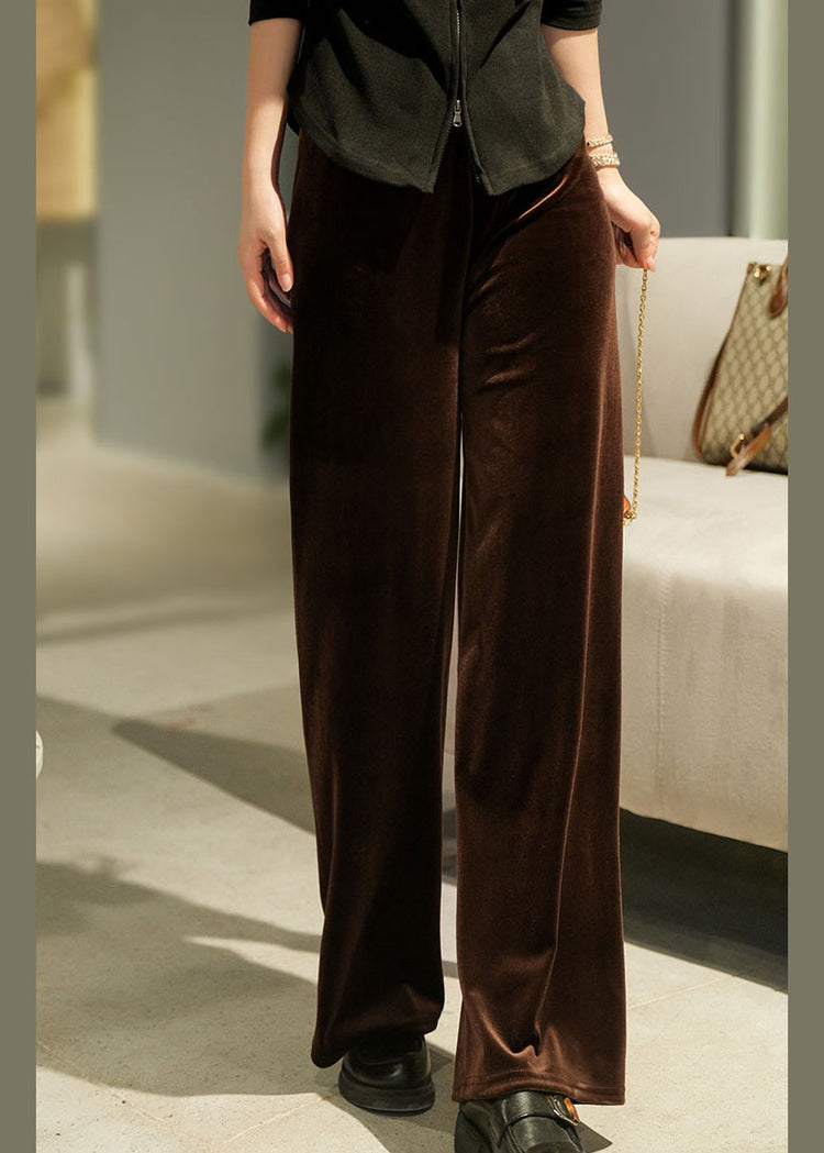 Style Dark Coffee Elastic Waist Draping Silk Velour Wide Leg Pants Winter