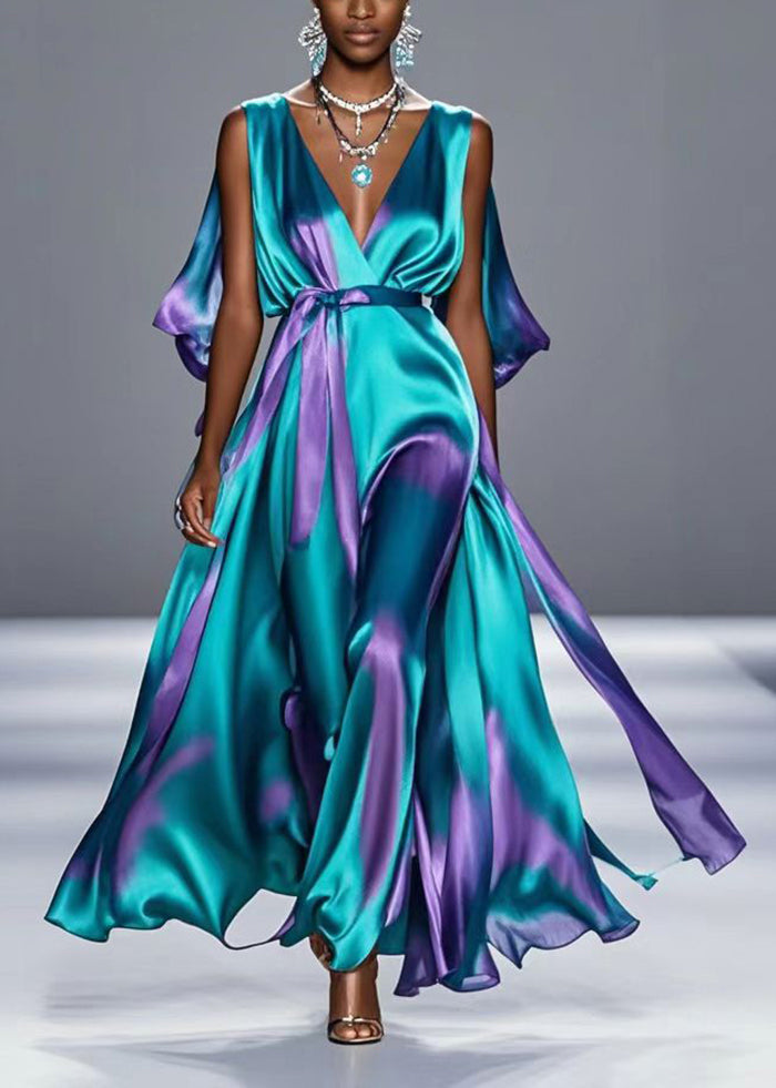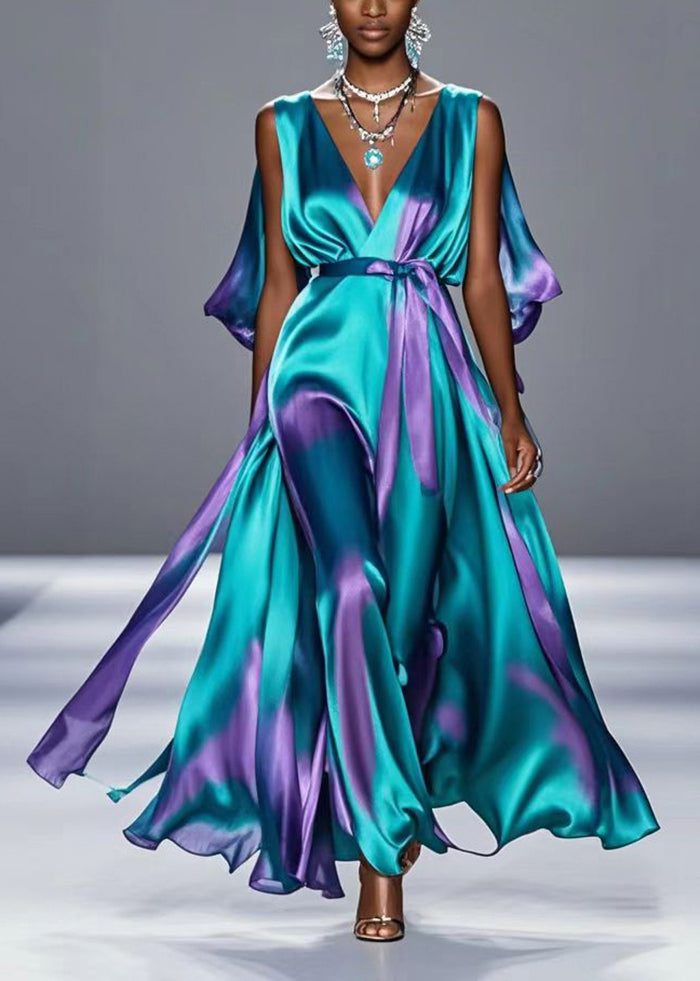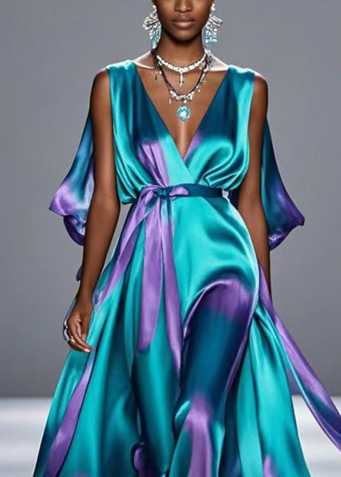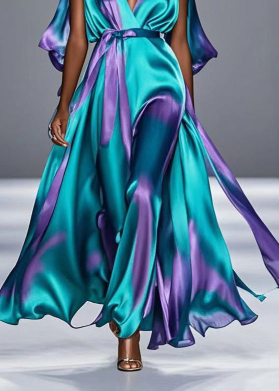 Style Green Tie Dye Exra Large Hem Silk Long Dress Summer