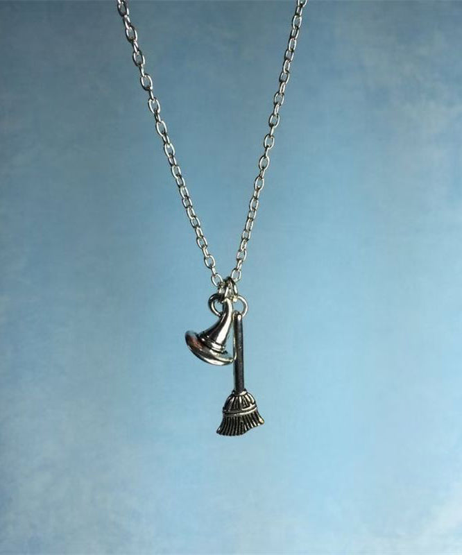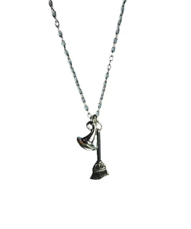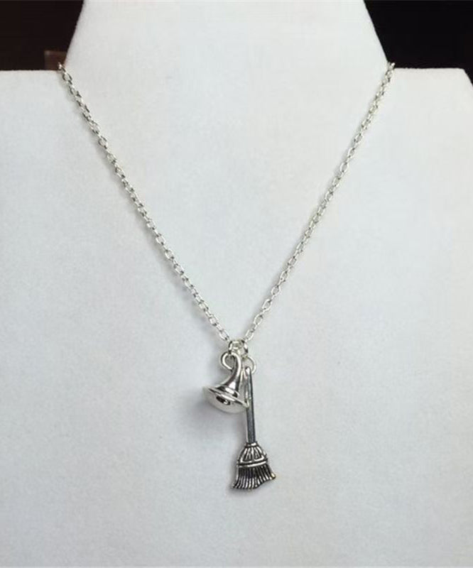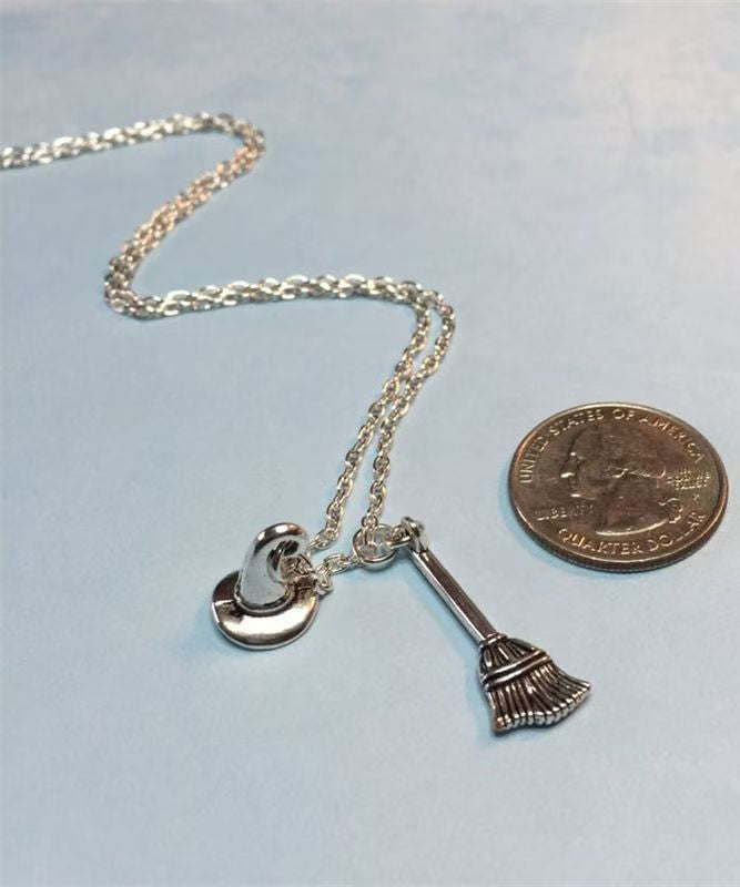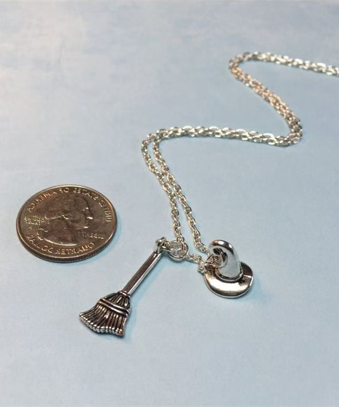 Style Silk Stainless Steel Chain Broom And Hat Pendant Necklace