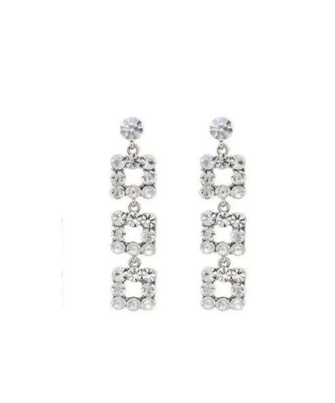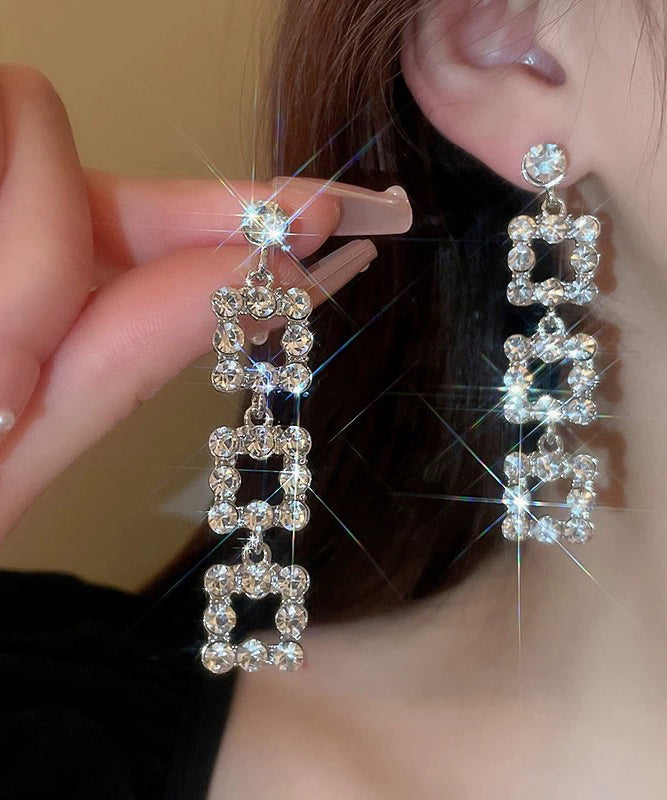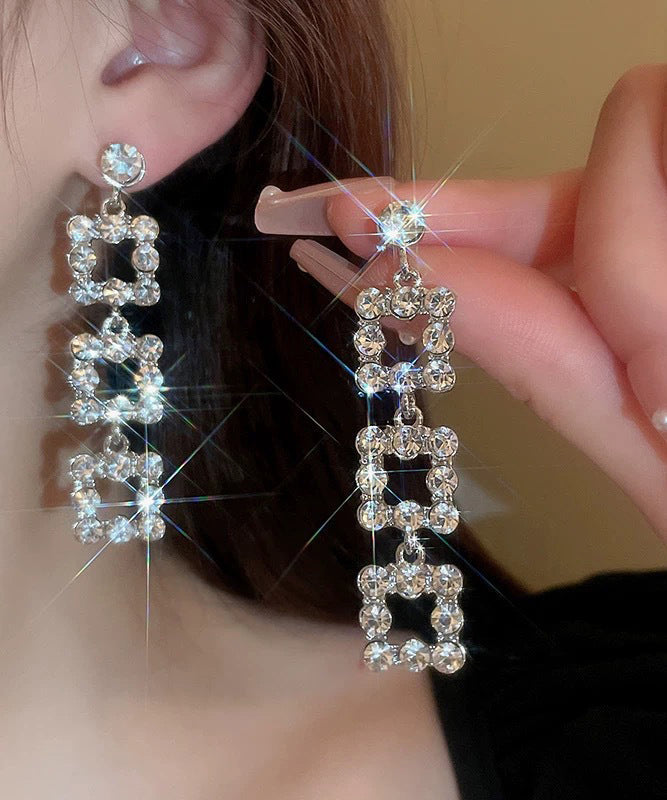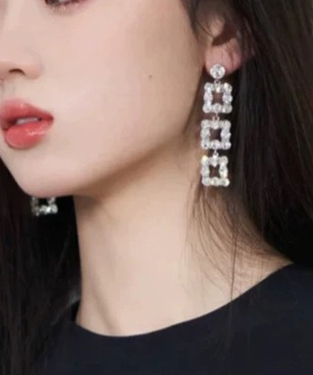 Unique Silk Copper Zircon Square Chain Drop Earrings