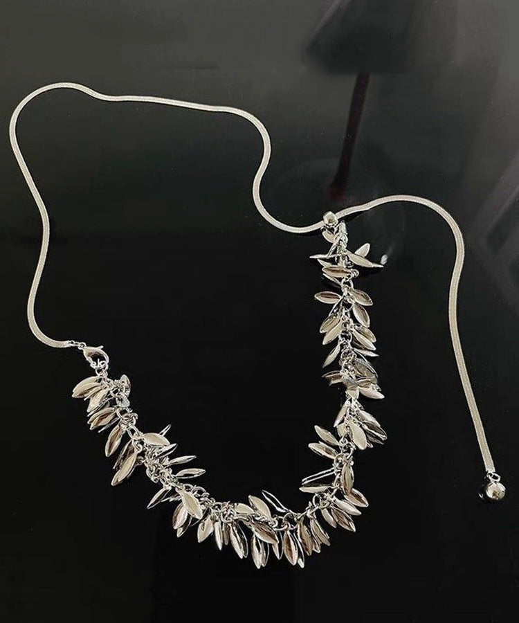 Unique Silk Stainless Steel Sequins Ear Of Wheat Tassel Pendant Necklace