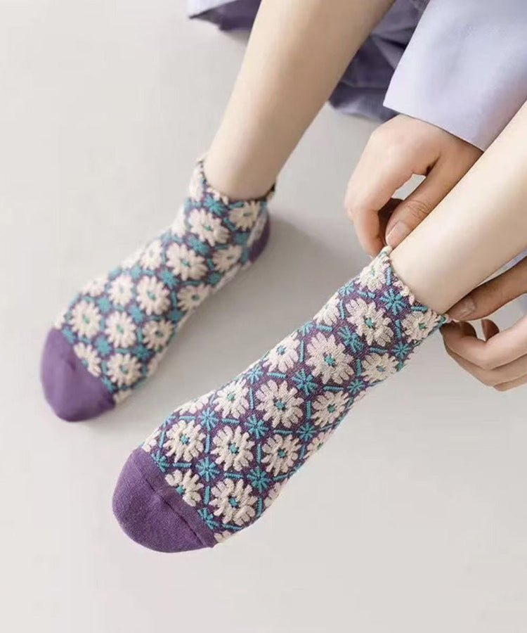 Countryside Style Flower Jacquard Cotton Ankle Socks