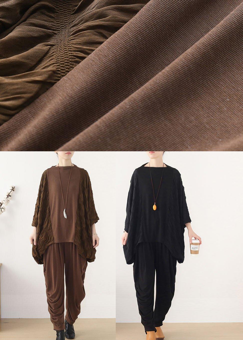 Style Chocolate Patchwork Wrinkled Top Fall