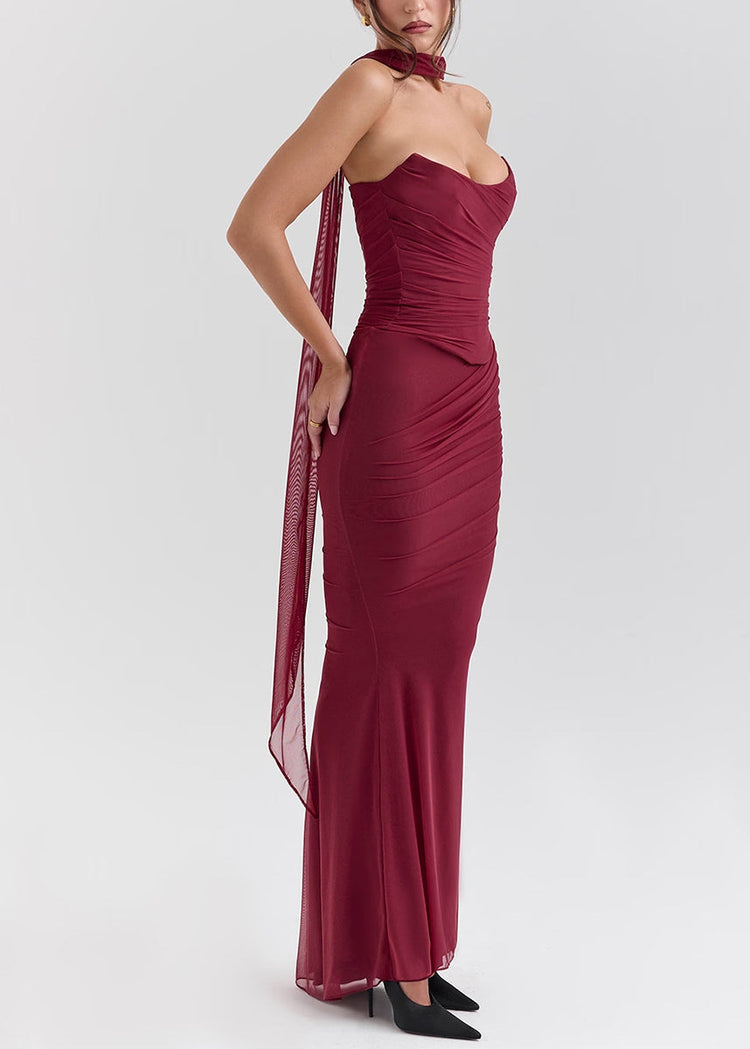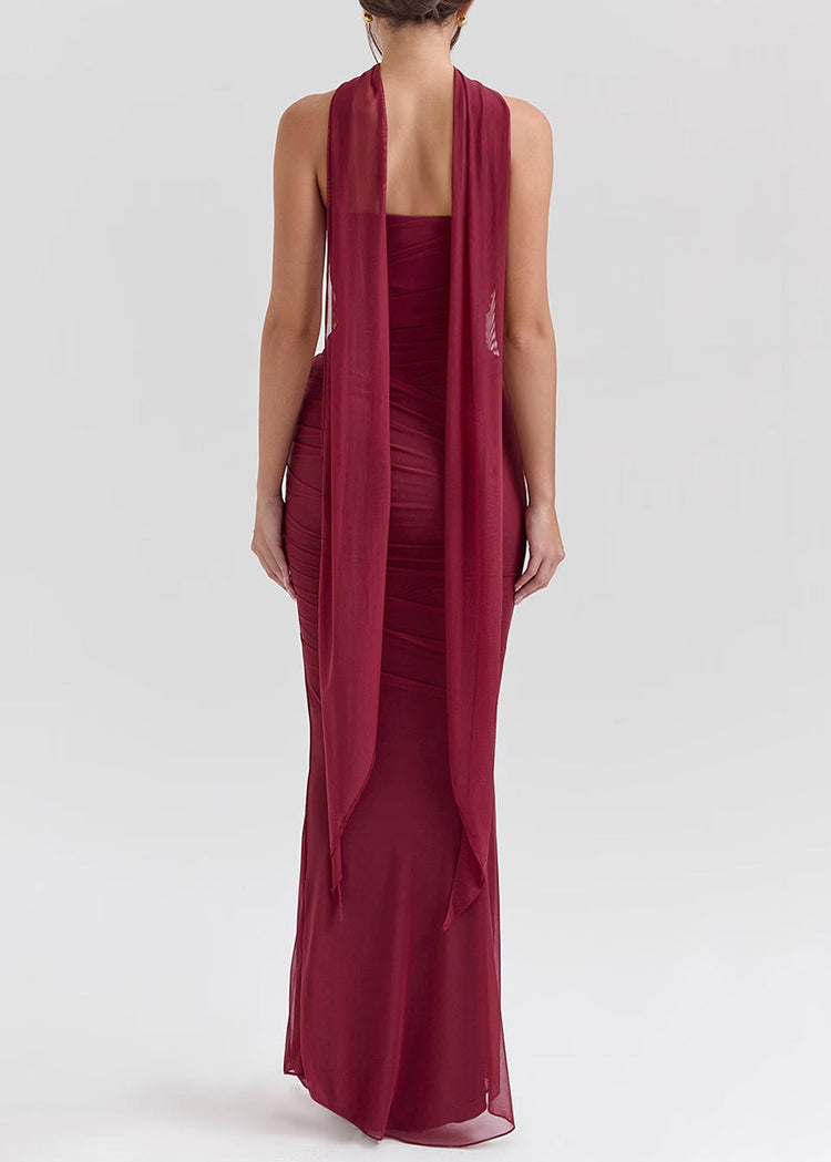Women Mulberry Cold Shoulder Wrinkled Tulle Vacation Dresses Summer