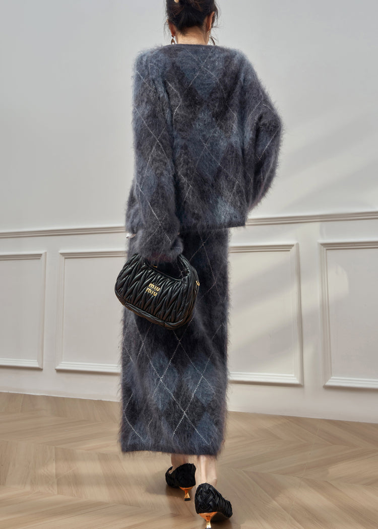 Plus Size Plaid O Neck Cweaters And Skirts Ma Hai Mao Two Pieces Set Winter
