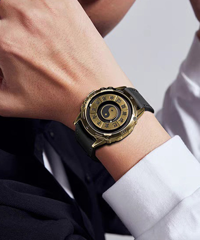 Retro Black Stainless Steel Eight-Diagram-Shaped Appetizer Waterproof Watches