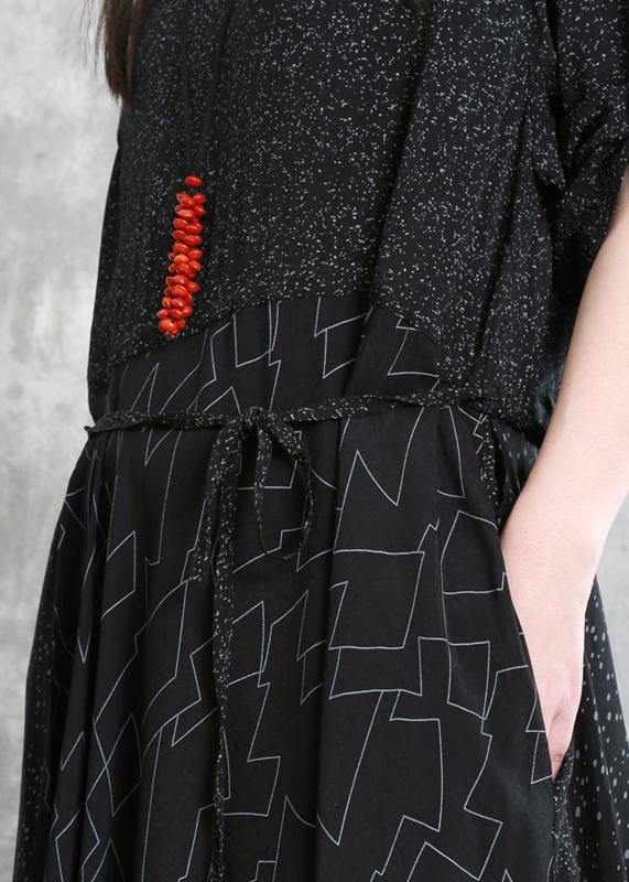 Bohemian black print clothes For Women o neck patchwork Maxi Dresses