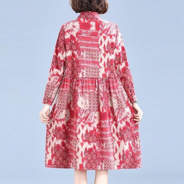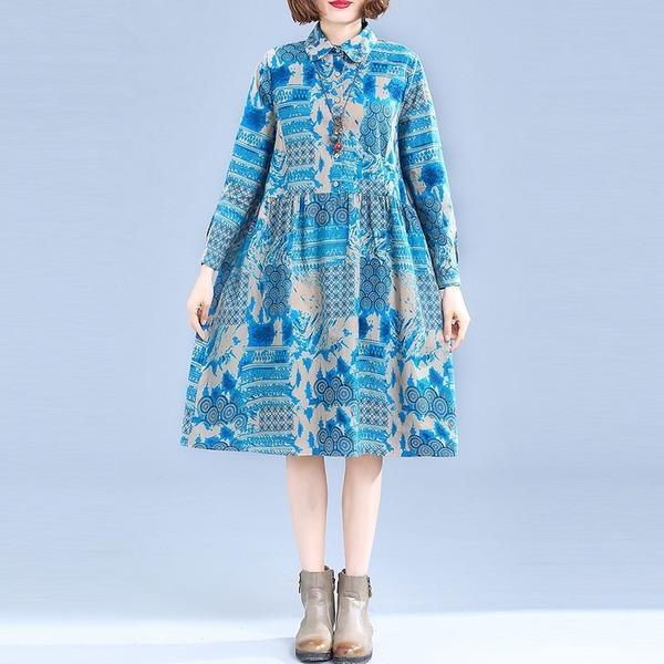 New 2020 Autumn Vintage Print Peter Pan Collar Knee-length Ladies Elegant A-line Dresses