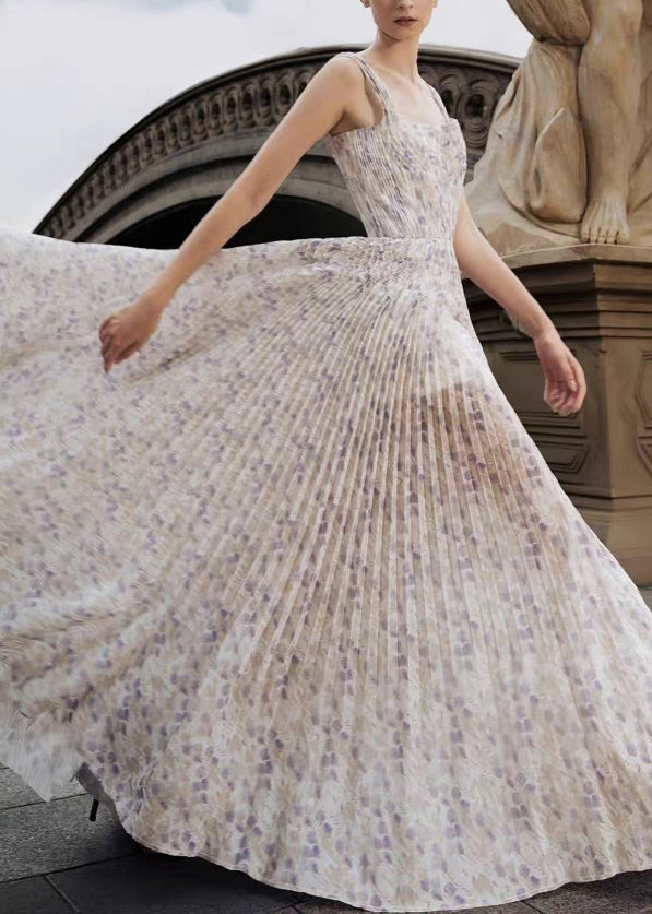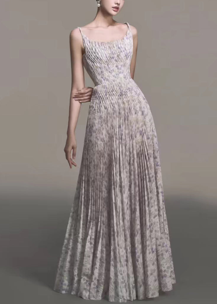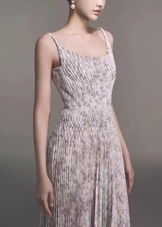 New Print Wrinkled Cotton Spaghetti Strap Dresses Sleeveless