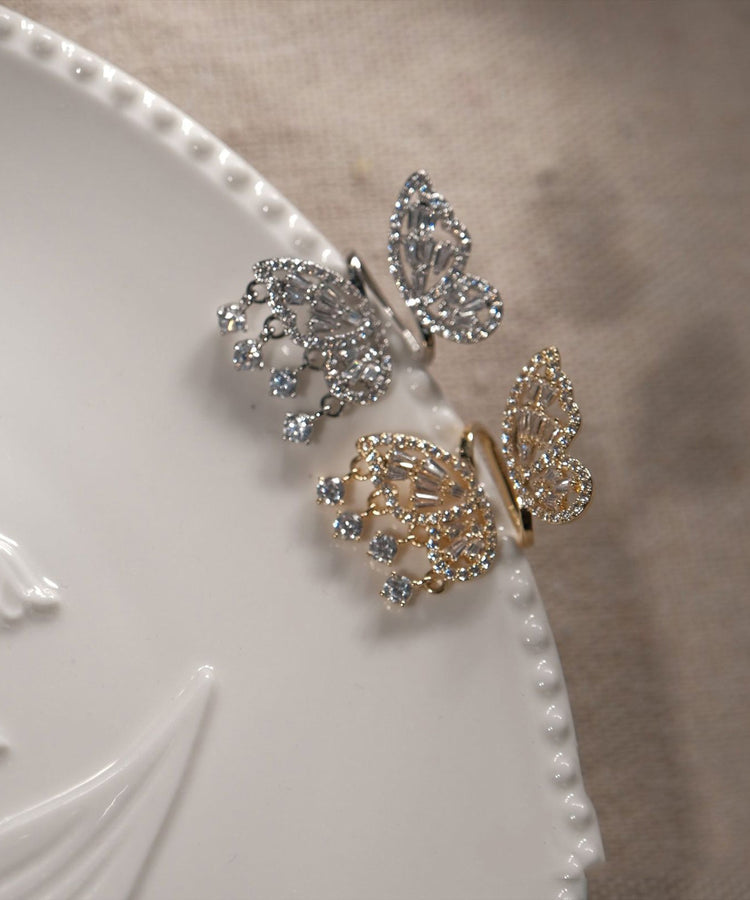 Original Silk Stainless Steel Zircon Butterfly Stud Earrings