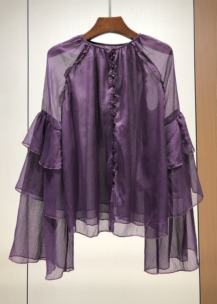 Stylish Yellow O-Neck Ruffles Chiffon Blouses Fall