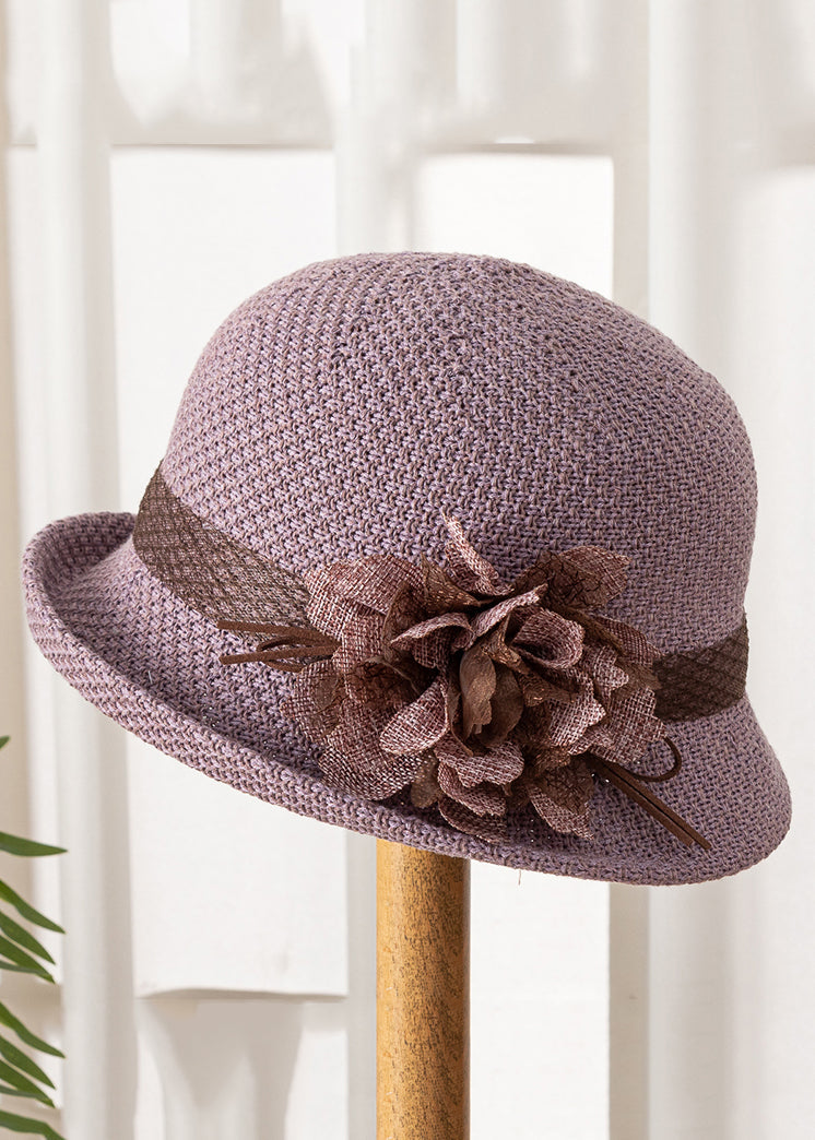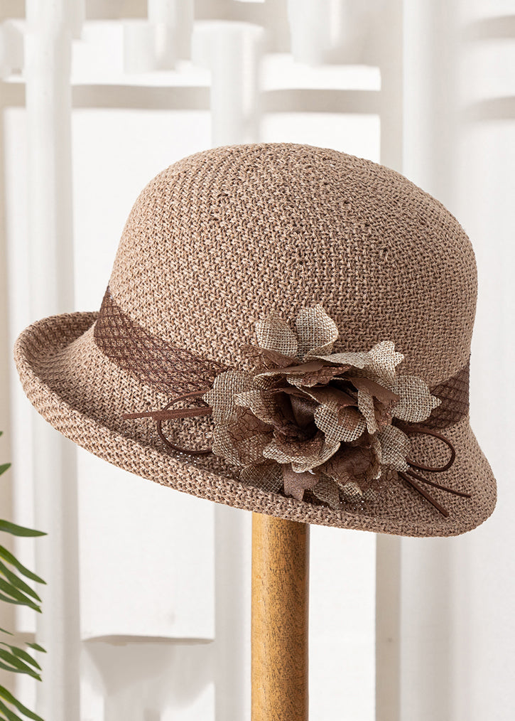 Brief Khaki Floral Hollow Out Cotton Cloche Hat