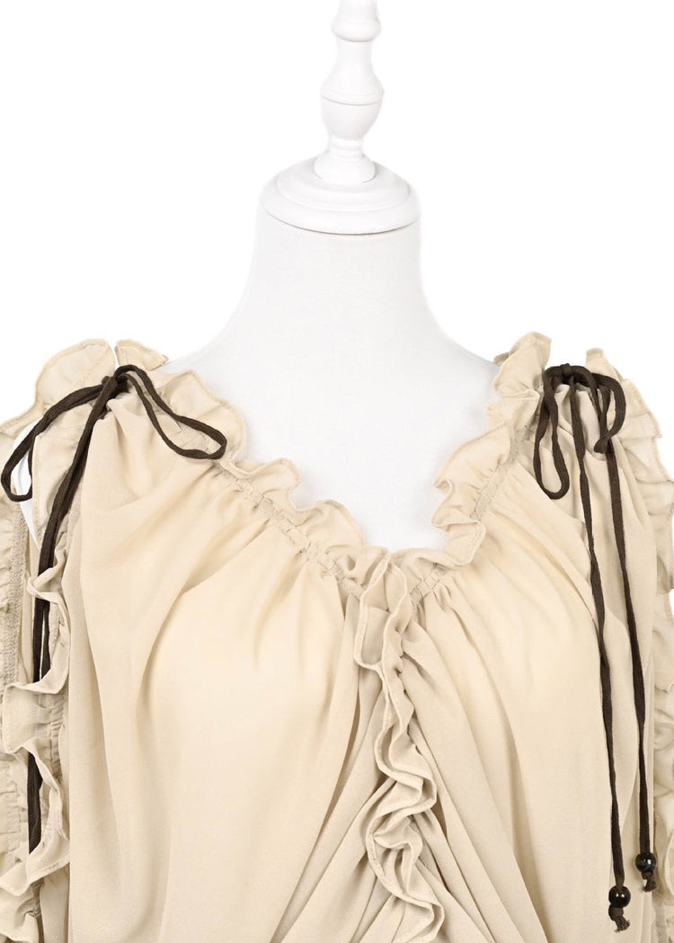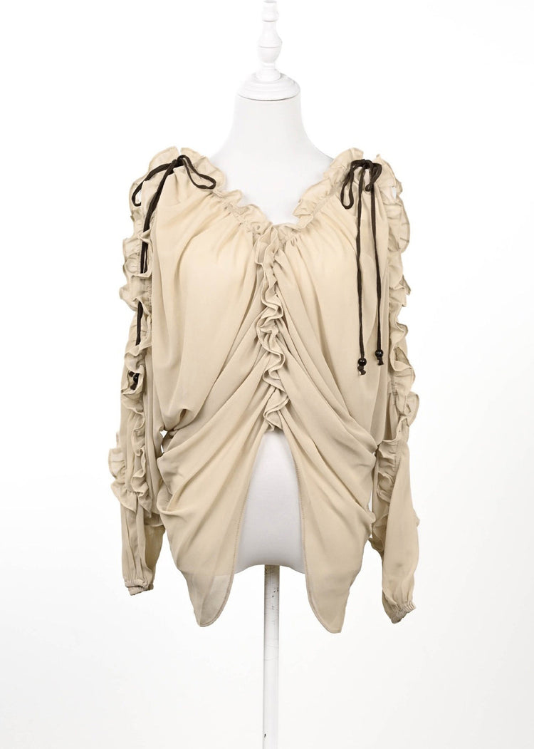 Original Design Apricot V Neck Ruffled Chiffon Top Summer