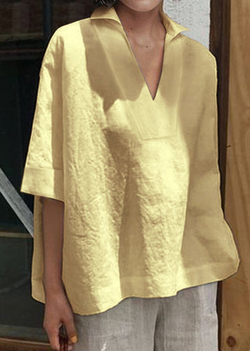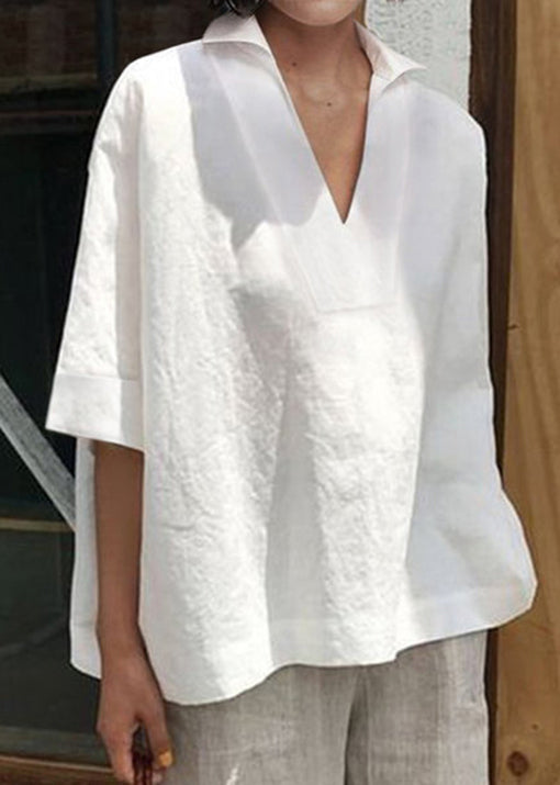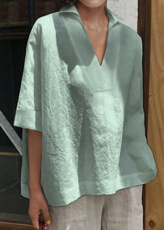 Women Pink V Neck Plus Size Cotton Shirt Summer