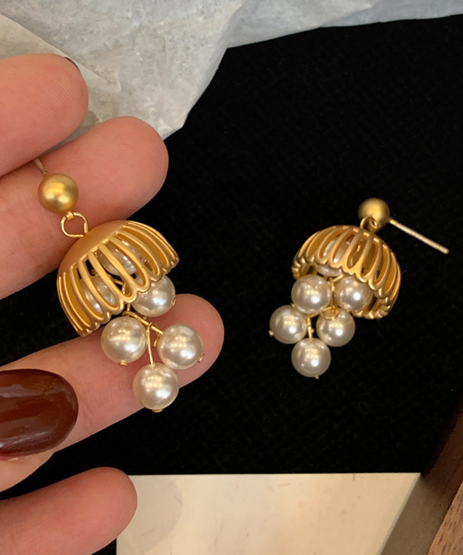 Stylish Gold Copper Overgild Pearl Small Bell Tassel Drop Earrings