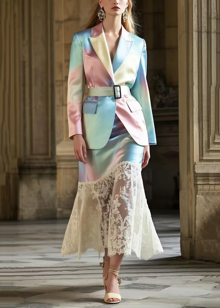 Boutique Tie Dye Tunic Patchwork Lace Silk Women Sets 2 Pieces Spring
