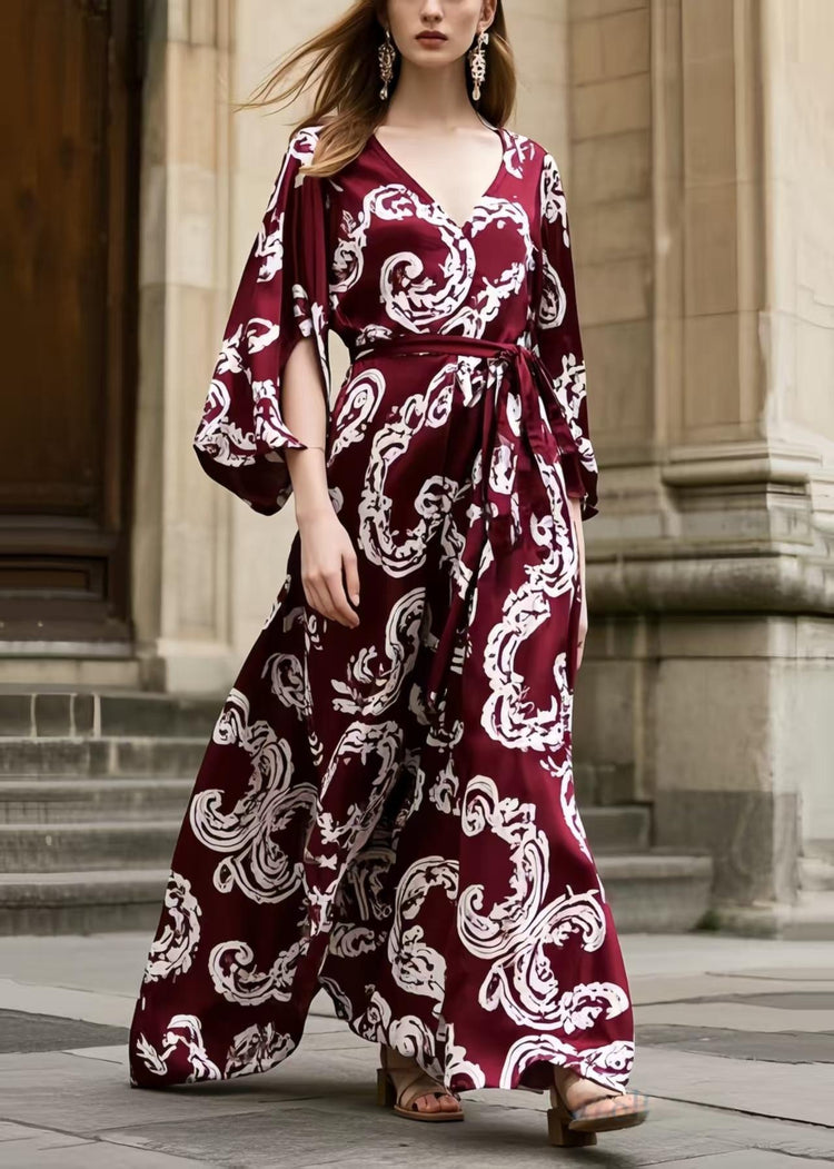 Elegant Mulberry Print Exra Large Hem Chiffon Tunic Dress Summer