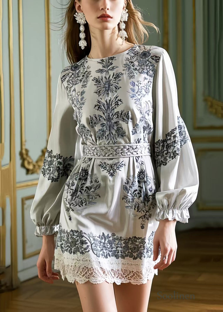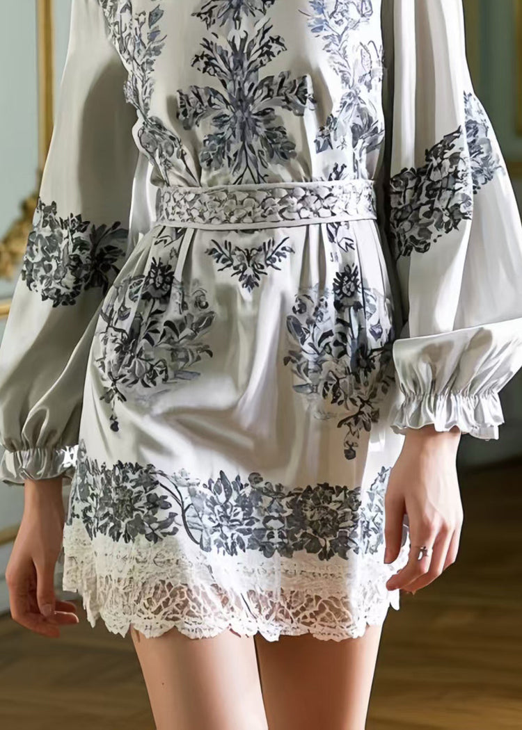 Stylish Grey Tunic Print Silk Work Dress Spring