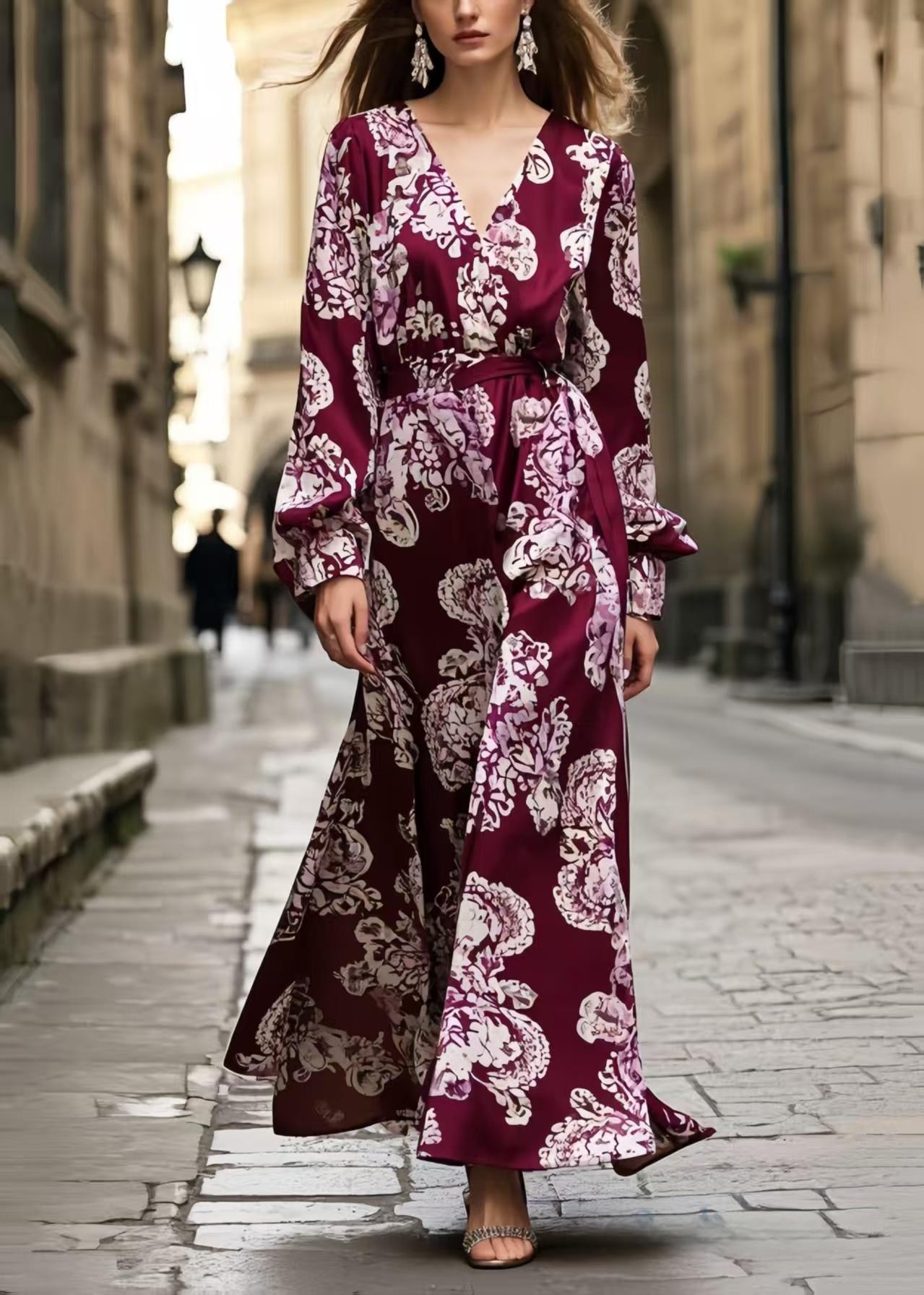 Bohemian Rose Print Exra Large Hem Chiffon Vacation Dresses Spring