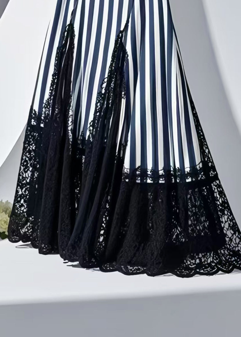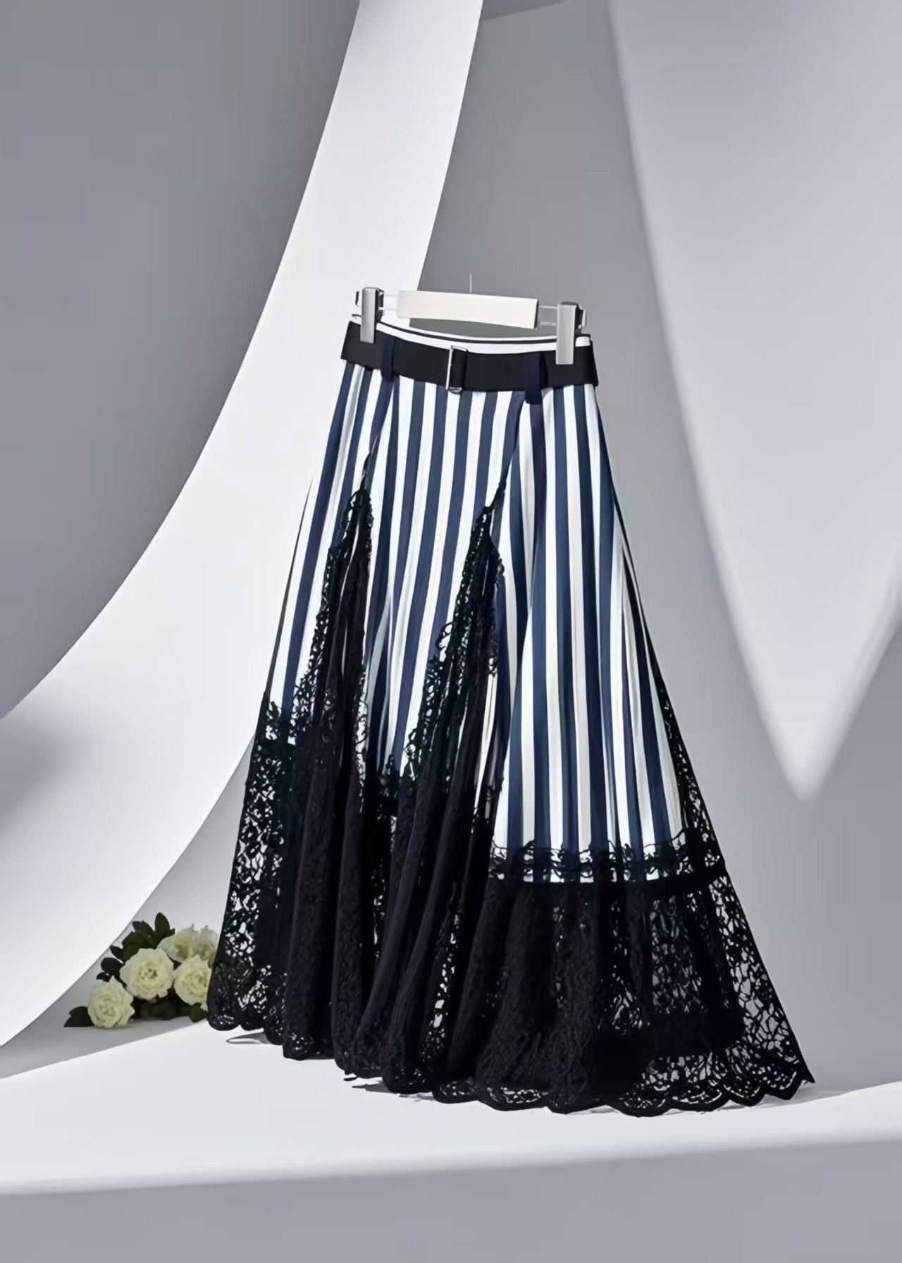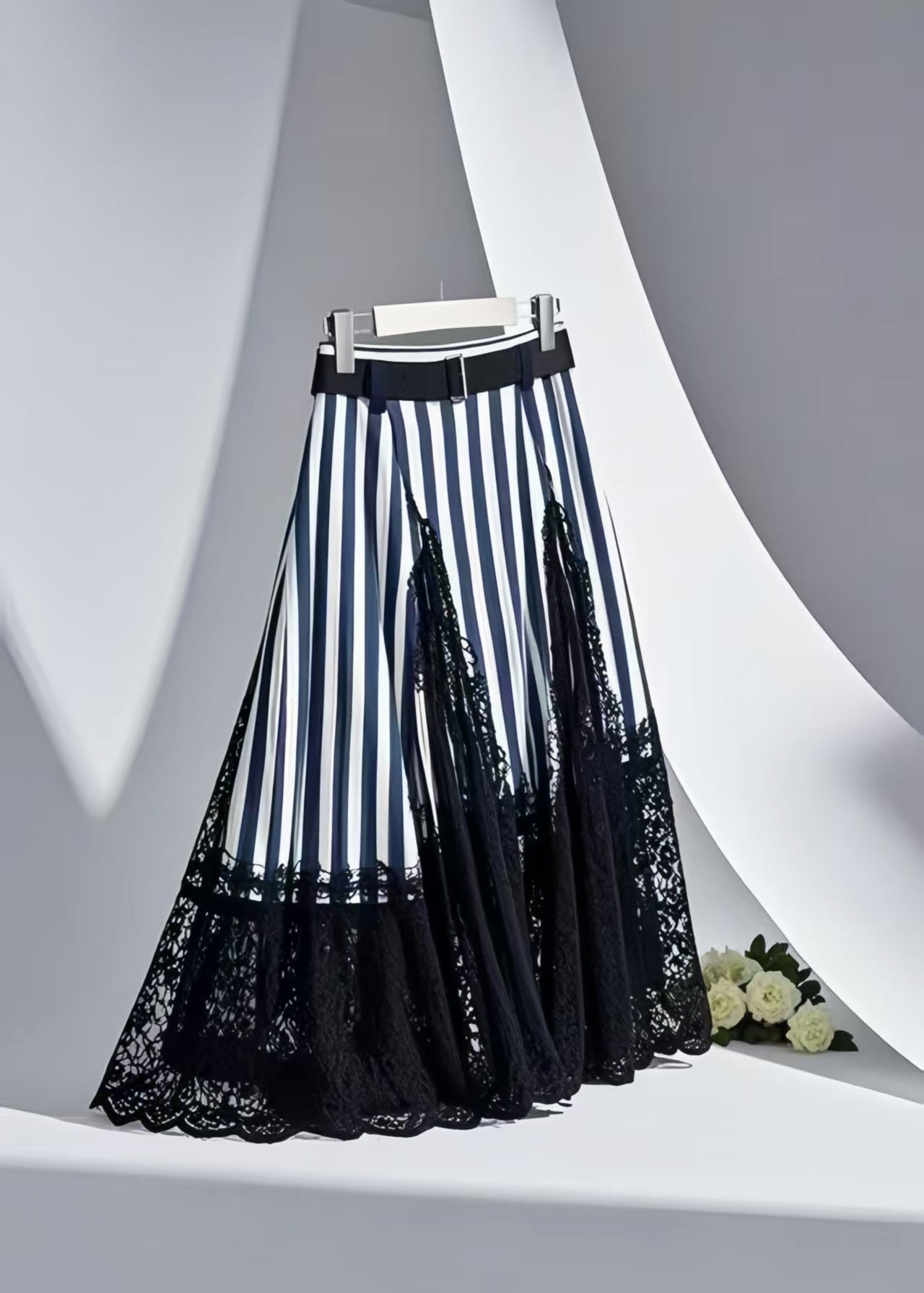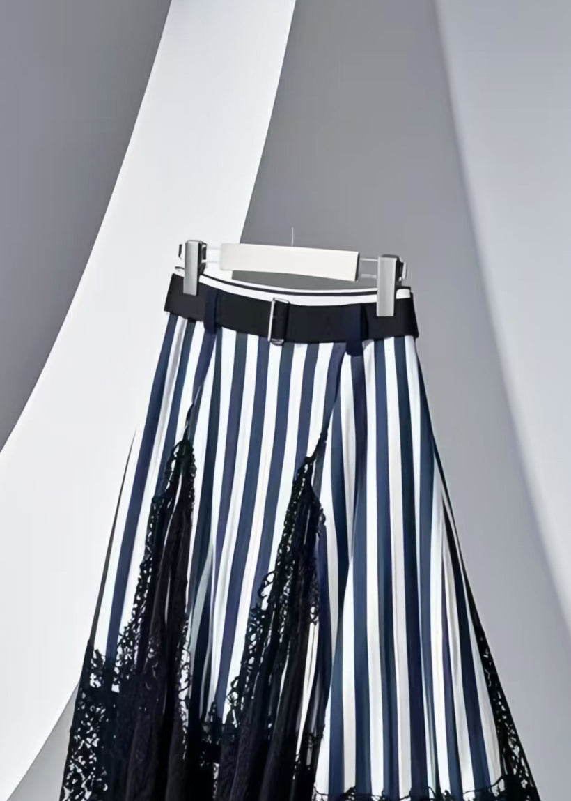 Modern Navy Striped Patchwork Lace Skirt Summer
