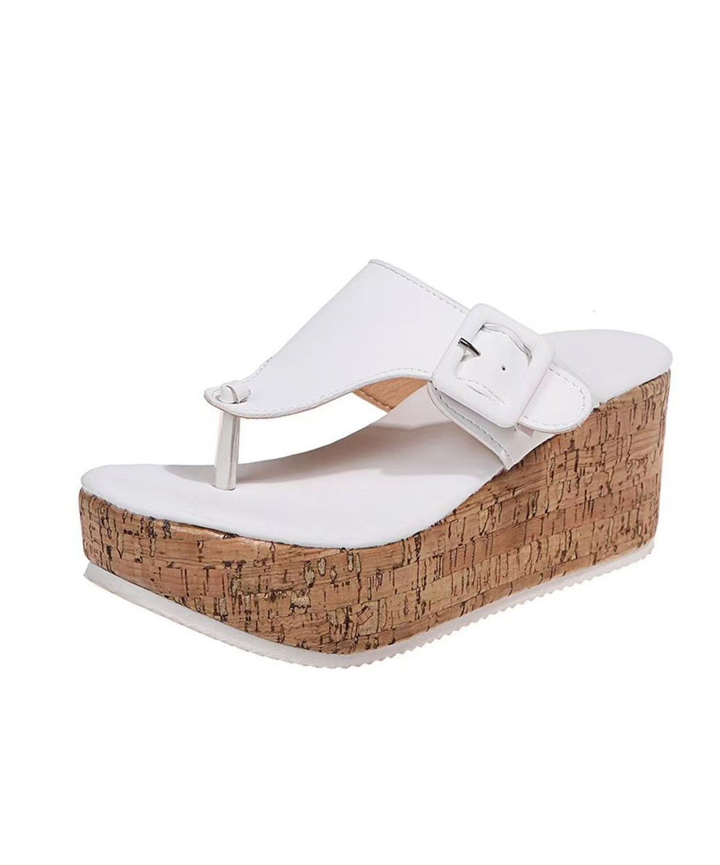 Black Faux Leather Splicing Wedge Heels Flip Flops
