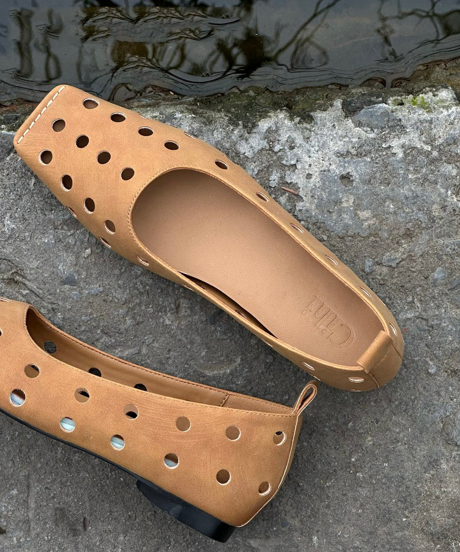 Classy Splicing Flat Shoes Brown Sheepskin Hollow Out