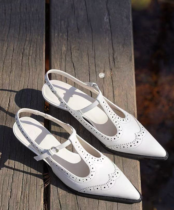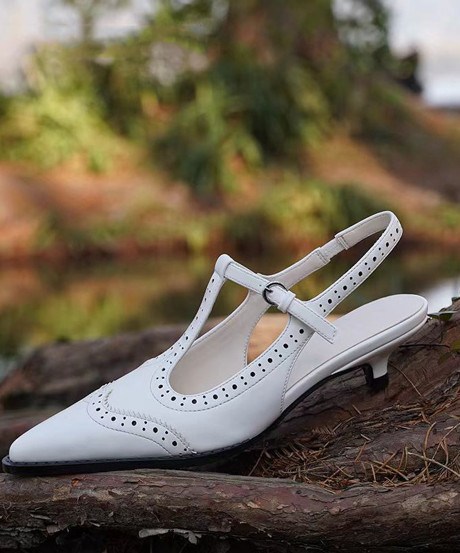 Gold Buckle Strap Splicing Classy Cowhide Leather Chunky Heel