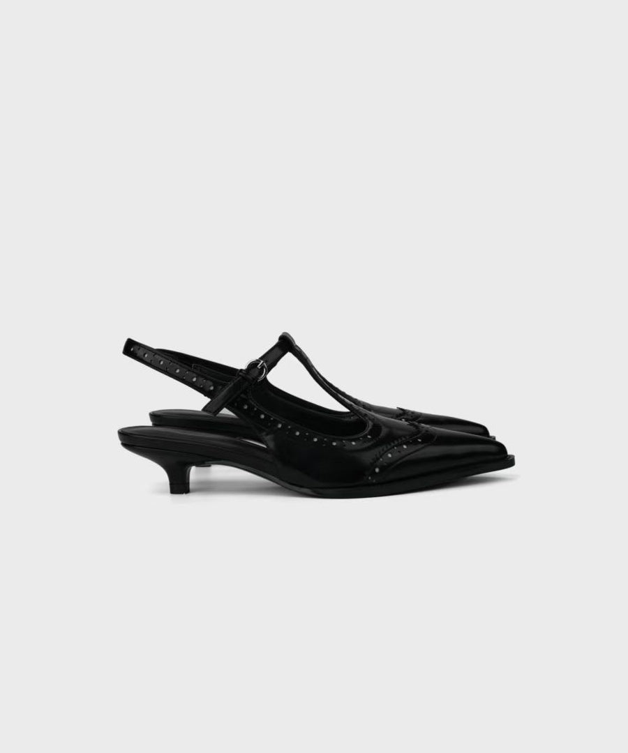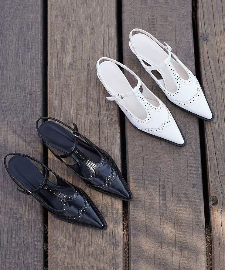 Black Stiletto Buckle Strap Fashion Splicing High Heels Pointed Toe