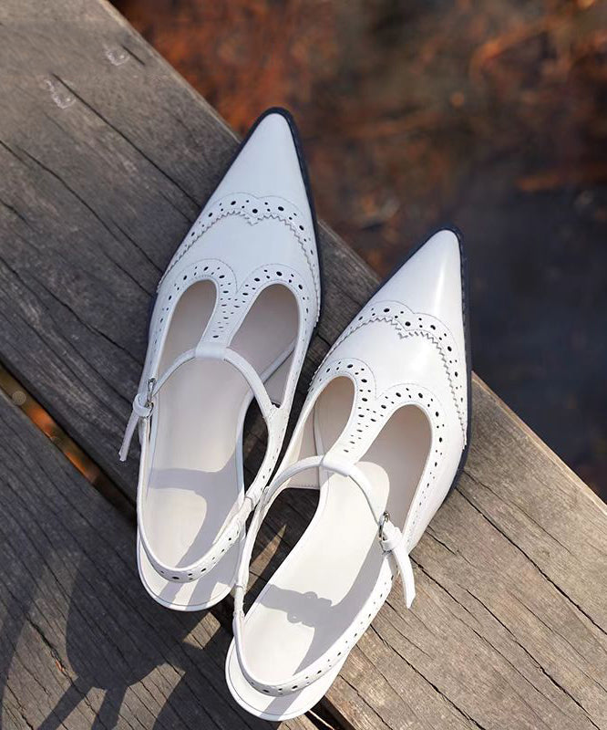 Blue Chunky Heel Cowhide Leather French Splicing Hollow Out