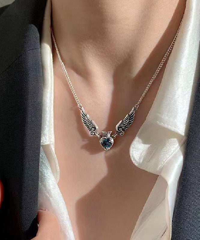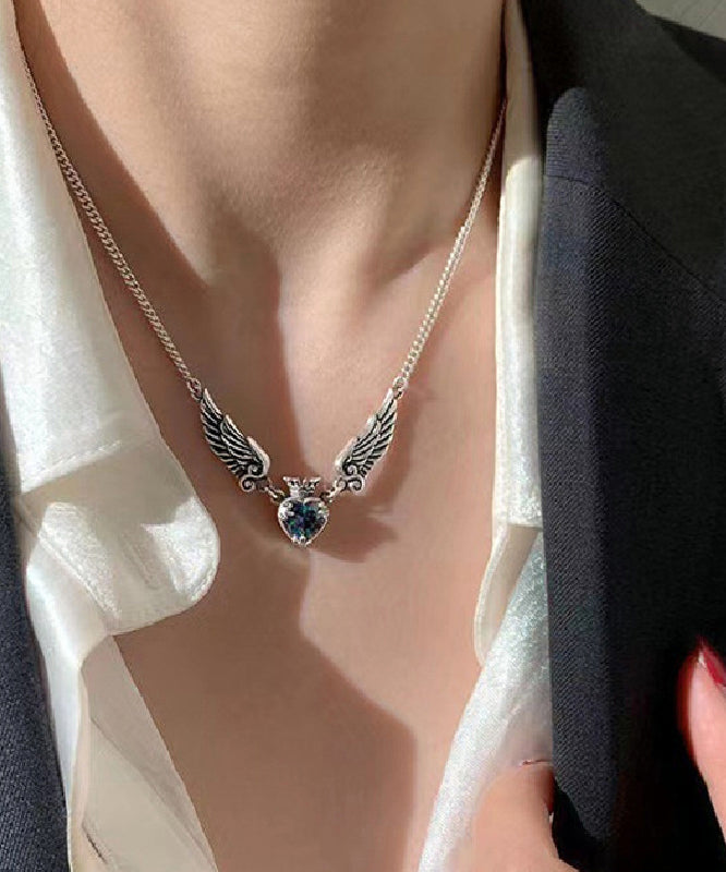Boutique Silk Sterling Silver Crystal Love Crown Wings Pendant Necklace