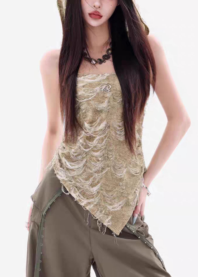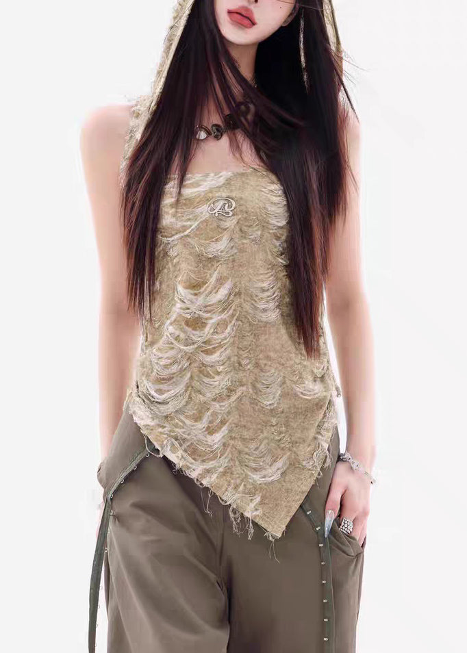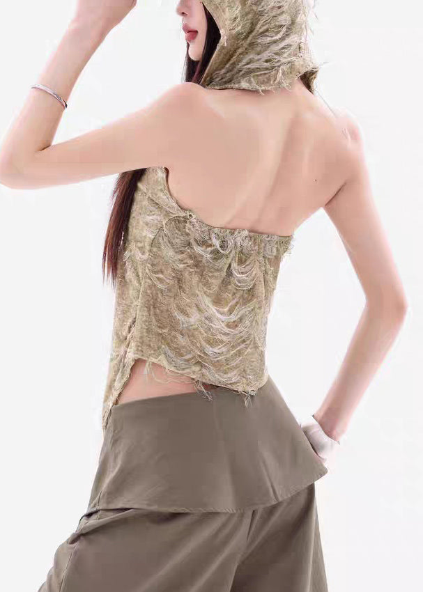 Green Backless Original Design Cotton Sleeveless Top Hooded