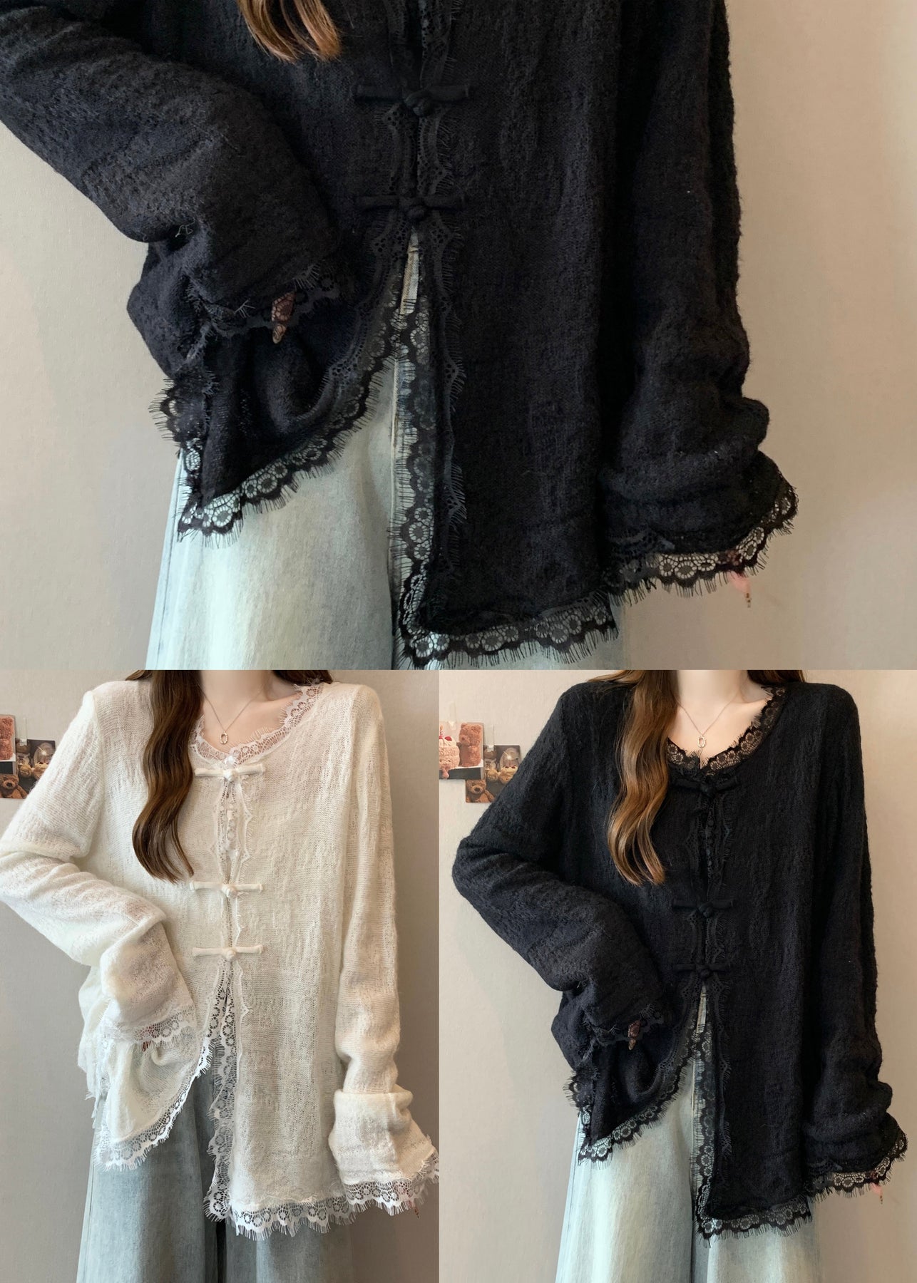 Art Black Oversized Eyelash Patchwork Knit Oriental Cardigan Fall