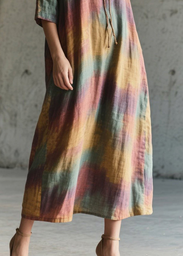 Art Rainbow Oversized Tie Dye Cotton Vacation Dresses Half Sleeve