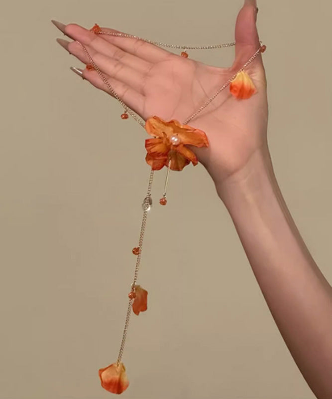 Beach Orange Alloy Floral Tassel Pendant Necklace