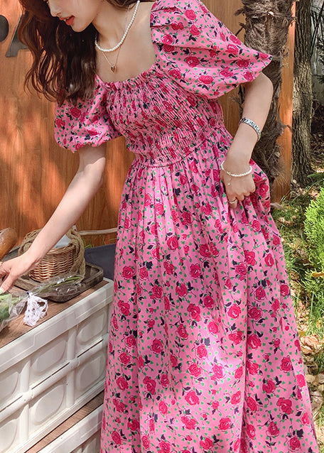 Beautiful Rose Puff Sleeve Print Cotton Holiday Dress