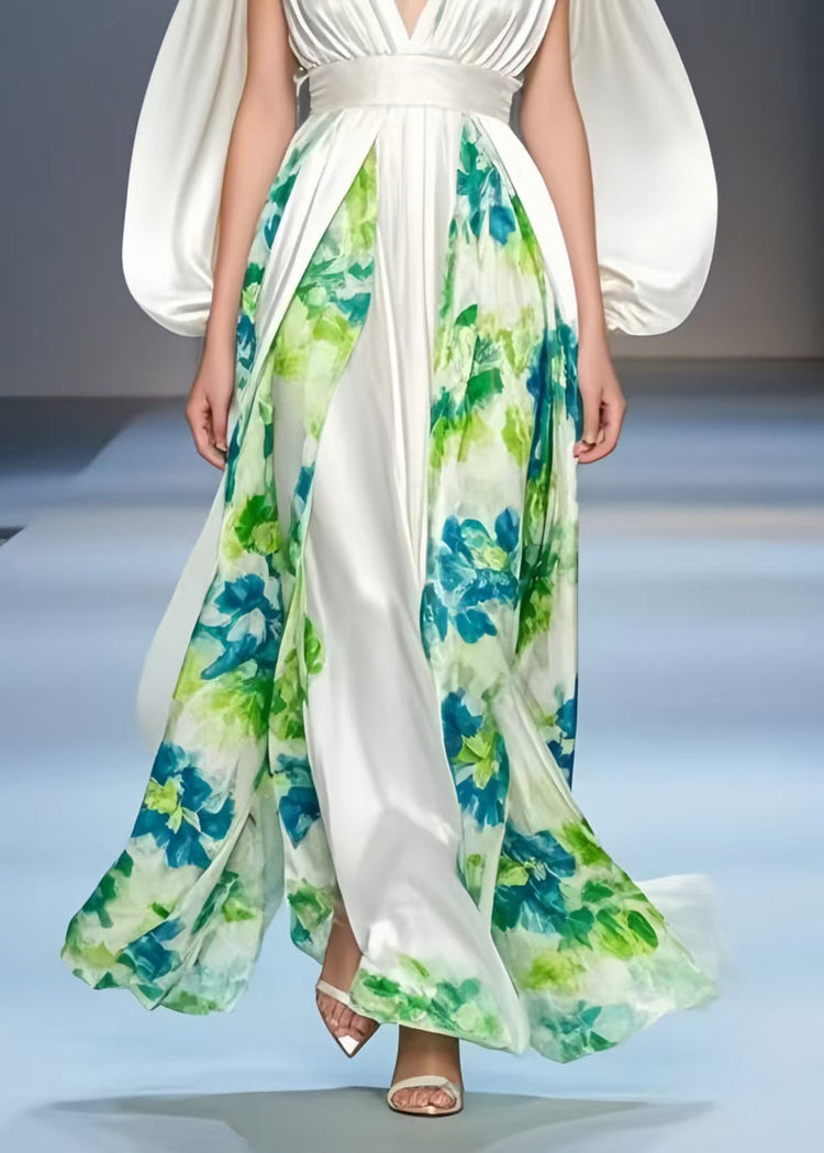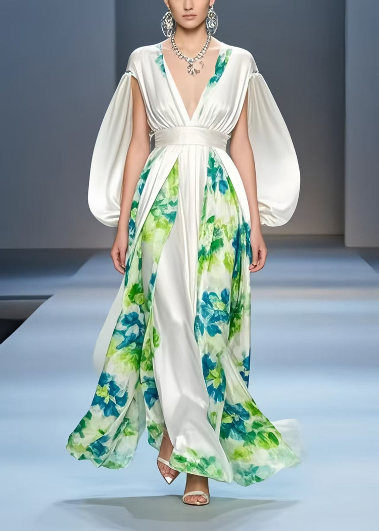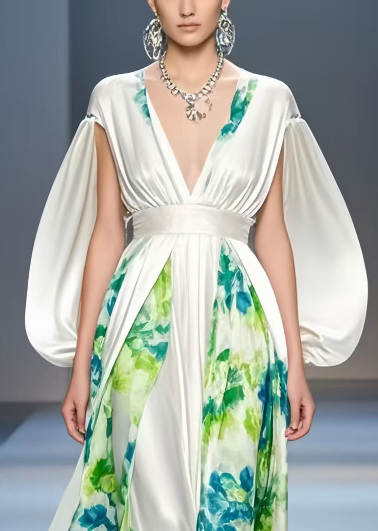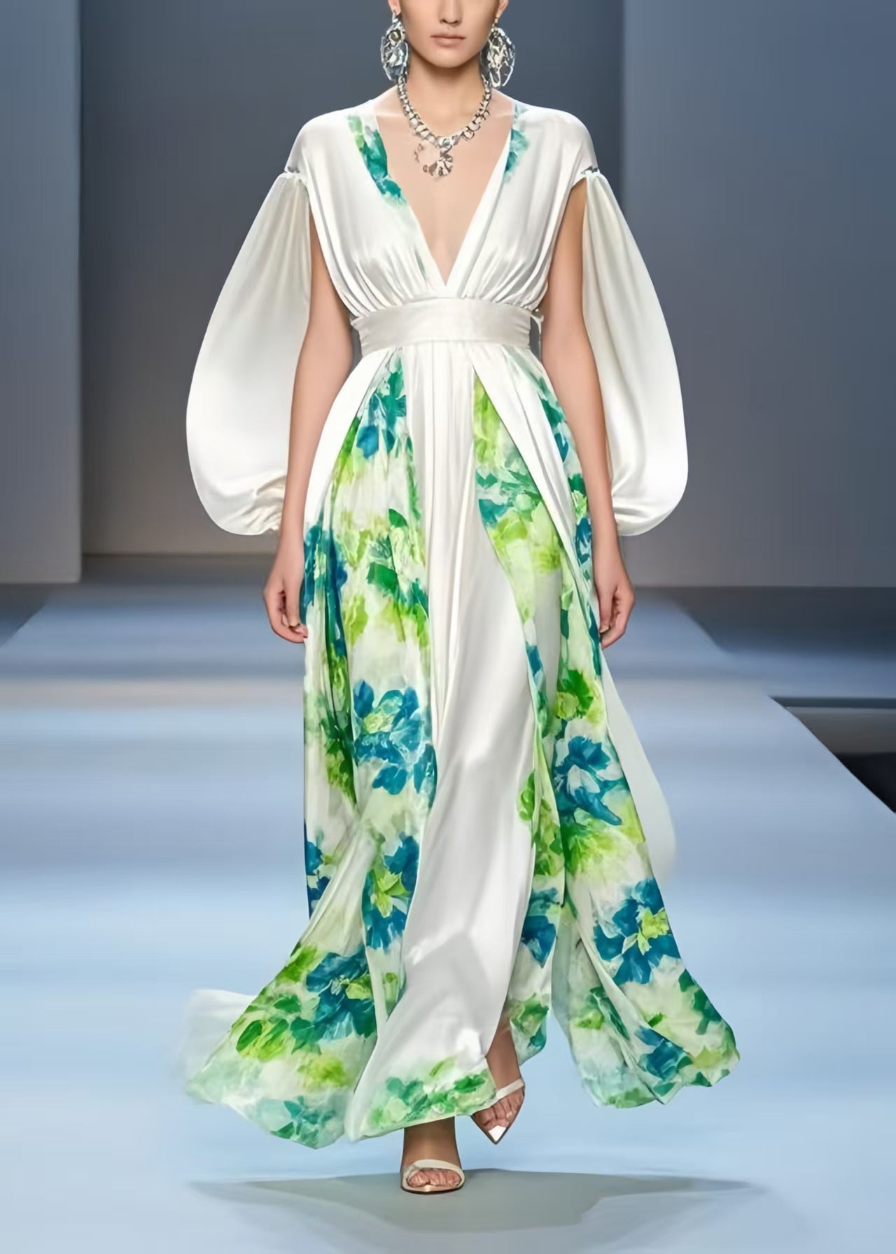 Beautiful White Cinched Patchwork Silk Dress Cloak Sleeves