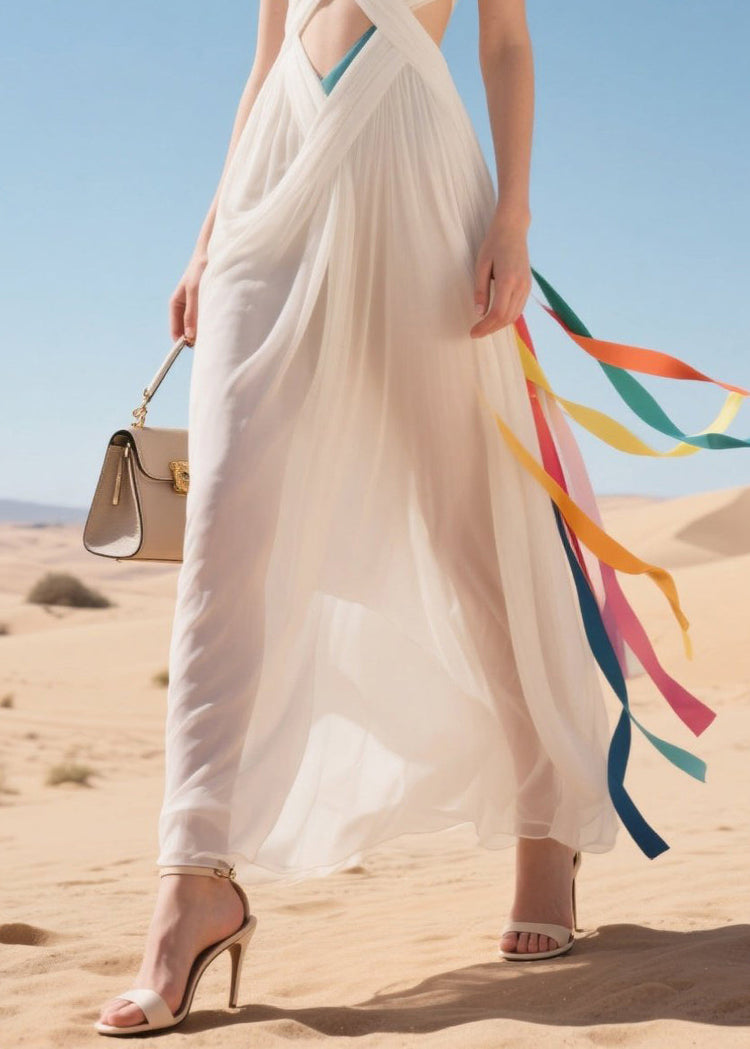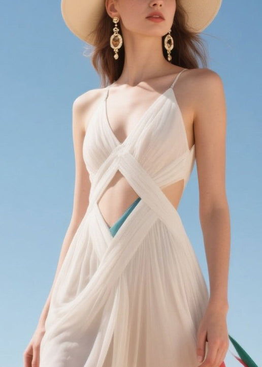 Beautiful White Sheer Hollow Out Tulle Beach Dress Summer
